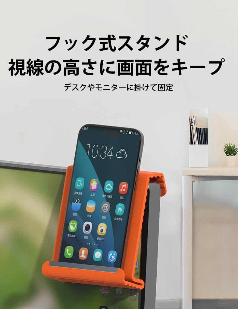 曲げ方次第でフック形状にも変形でき、デスクに置くだけでなく引っ掛けて使用することも可能です。