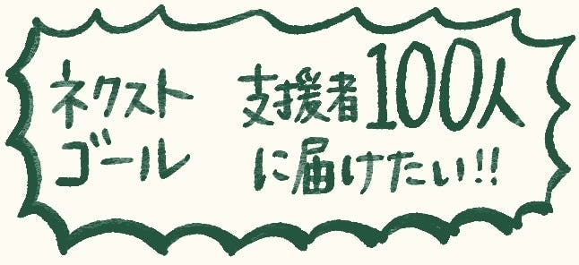 支援者数100人を目指します。現時点で57人、あと43人です。