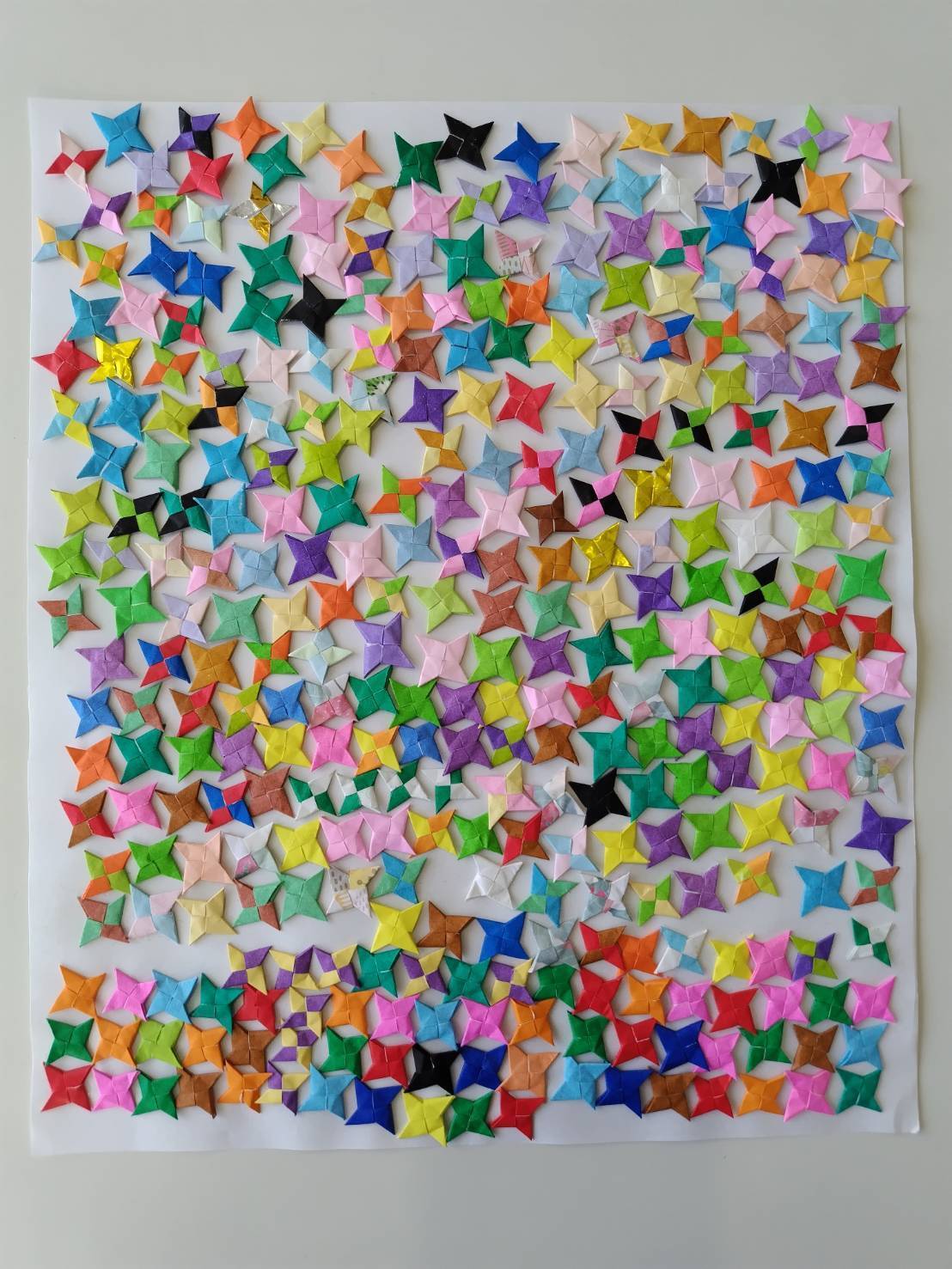 実際の折り紙(約2cm)と同じ寸法にこだわり約400個の手裏剣のひとつひとつに魂を吹き込み仕上げました。
