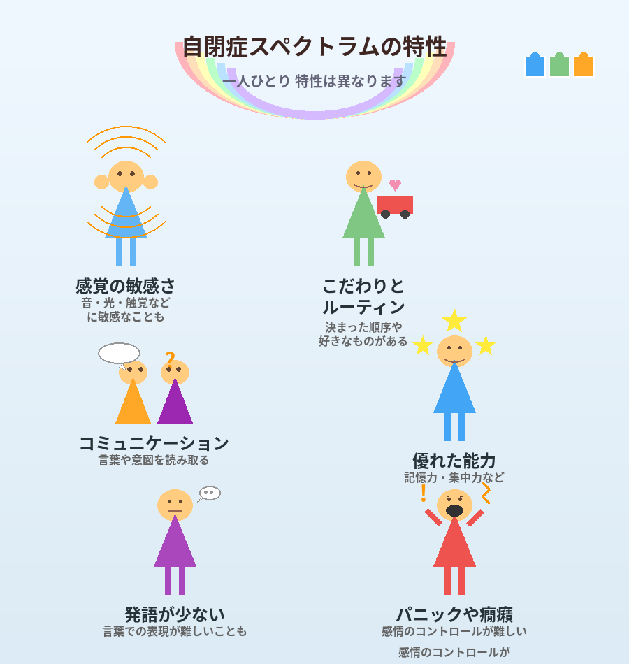 発達障害や自閉スペクトラム症(ASD)の特性は、人によってさまざまであり、境界線のないグラデーションのようなものです。