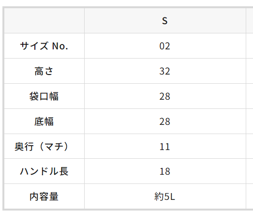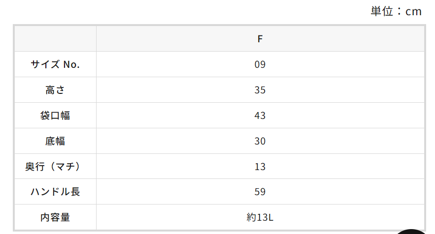 マルシェバッグ寸法表