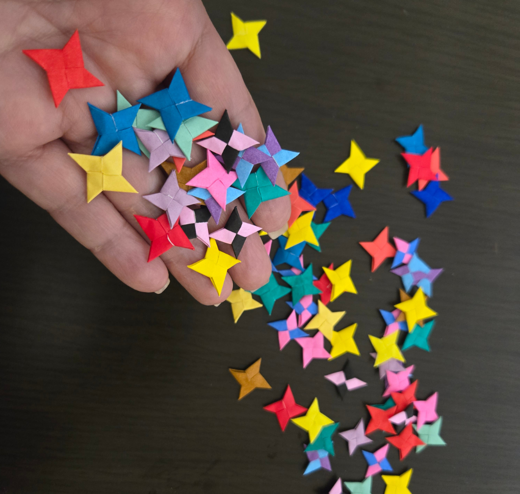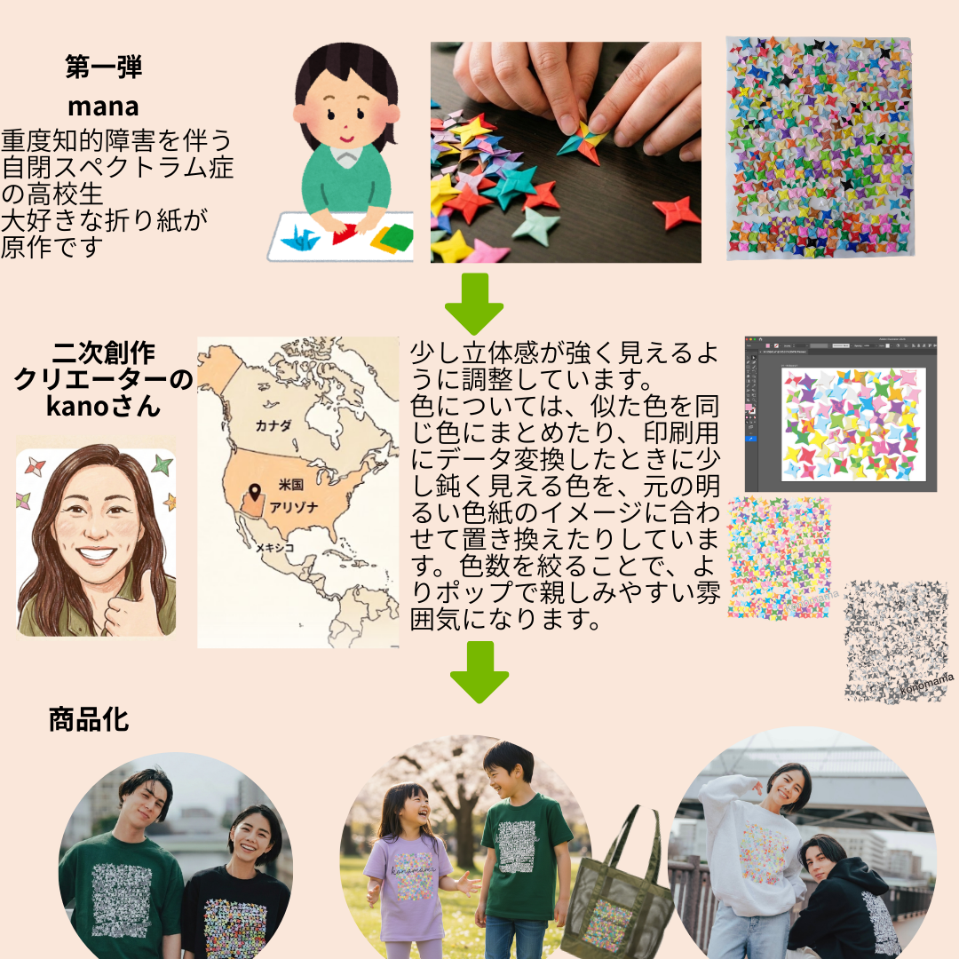 ここにあるデザインの原点は重度知的障害を伴う自閉スペクトラム症の高校生manaが折るわずか2cmの小さな「手裏剣(折り紙)」です。