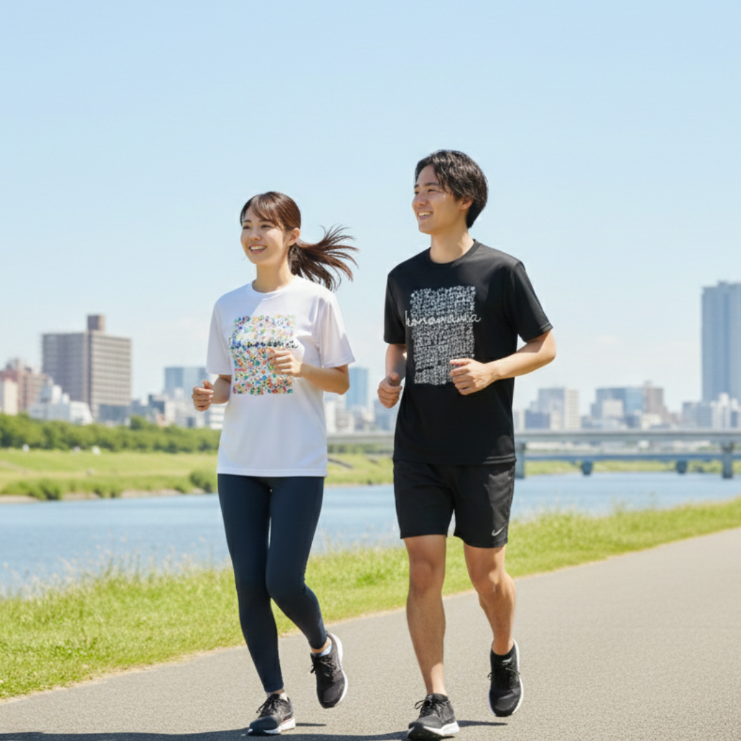 セミダル糸を採用することで、透けにくく、テカリやツヤが抑えられた自然な光沢感のある、洗練された印象のドライTシャツはスポーツシーンだけでなくデイリーウェアにも最適です。
