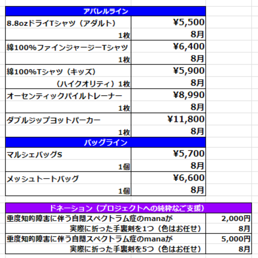 ※ 残りの収益は、商品原価・加工代・撮影費・送料・梱包資材・出荷作業人件費および次回のプロジェクト運営費に充てられます。