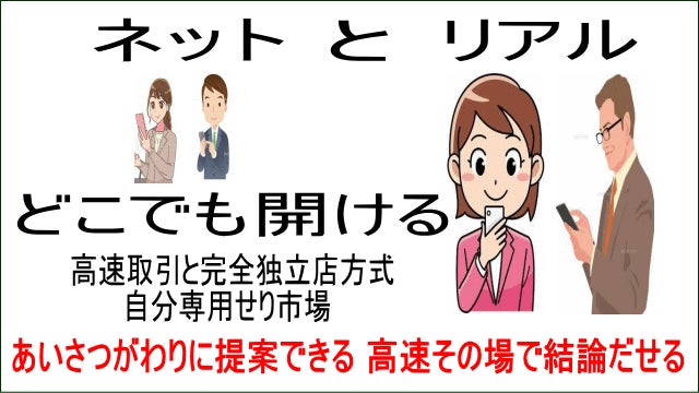 15年間、私が温めてきたこのアイデアを、一緒に現実化してくださる皆さまをお探ししています。ネットdeせり市場が成長すれば、新しい取引文化が生まれ、それは社会全体にも良い影響をもたらすと信じています。ぜひ、このチャレンジにご参加ください。皆さまのご支援を心からお待ちしています。なお、値段が下がるオークションにStop!をかける機能は特許取得済みです(特許4640662号)。