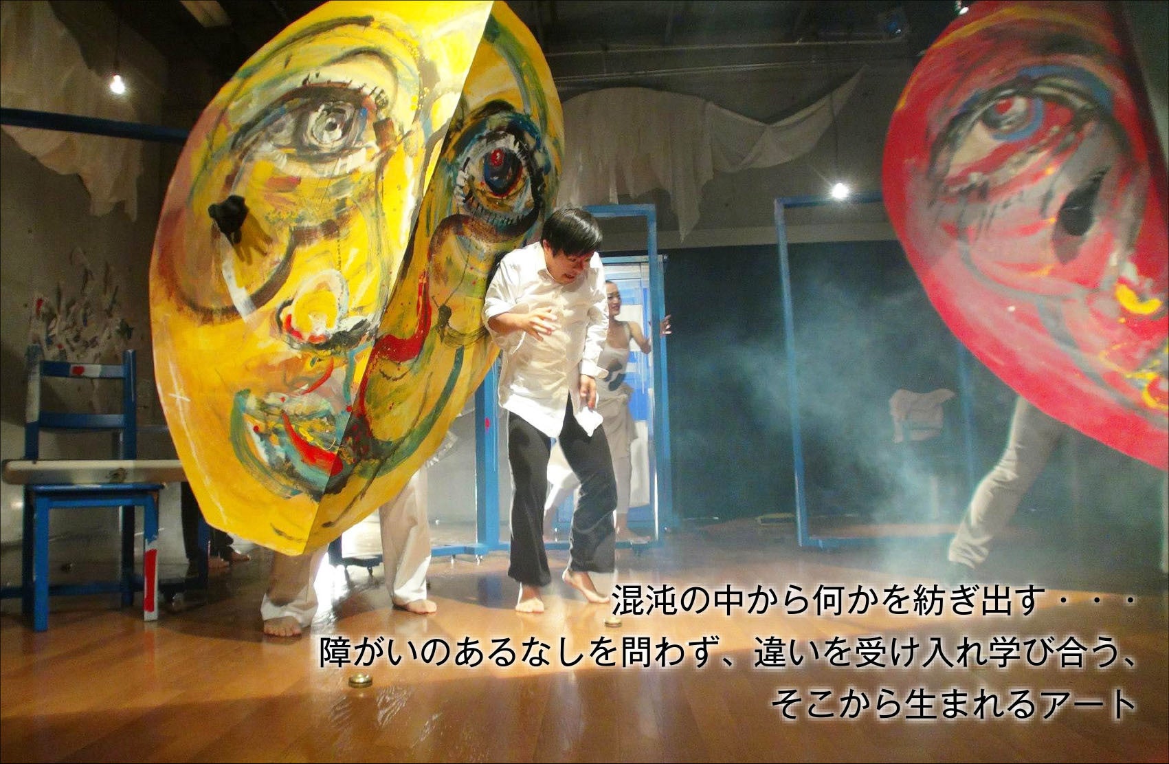 「混沌の中から何かを紡ぎ出して行けたら・・・。自分たちひとりひとりのあるがままの姿を、またひとりひとりのエネルギーを頼りに、確かな糸を繰り出してみたい。その糸が織りなす模様はどんな輝きを生み出していくだろうか。障がいのある人も障がいのない人も、ちがいを乗り越え、学び合い、認め合う。そこから何かが生まれることを期待して・・・」