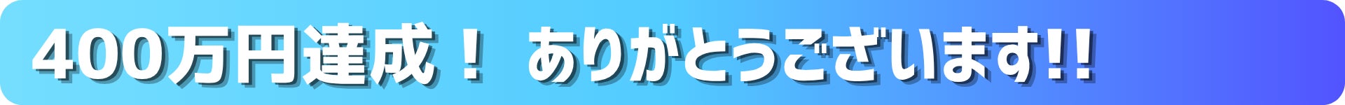 開始からわずか13時間で目標金額であった150万円を達成し、セカンドゴールの250万円、そしてついに400万円という多大なご支援をいただくことができました。