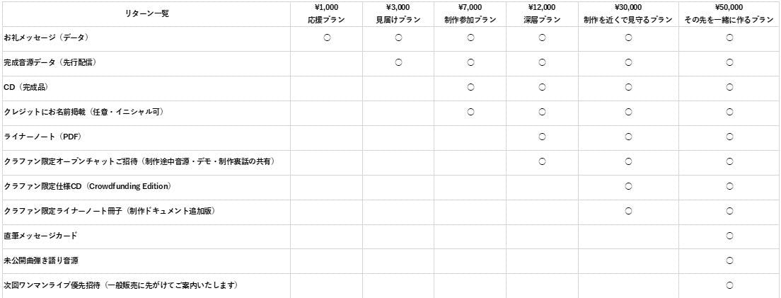 今回のクラウドファンディングでは、完成音源だけでなく、クラファン限定のCDやライナーノートなど、“応援の形が物として残る”リターンを用意しました。