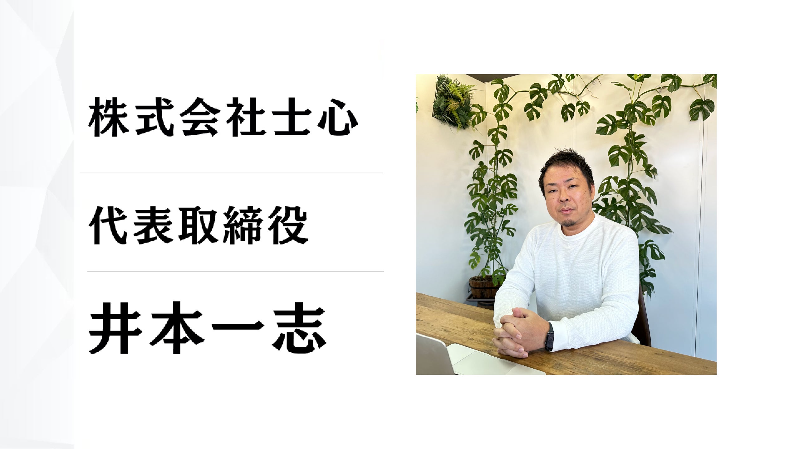 はじめまして。株式会社士心(ししん)代表取締役の井本一志です。