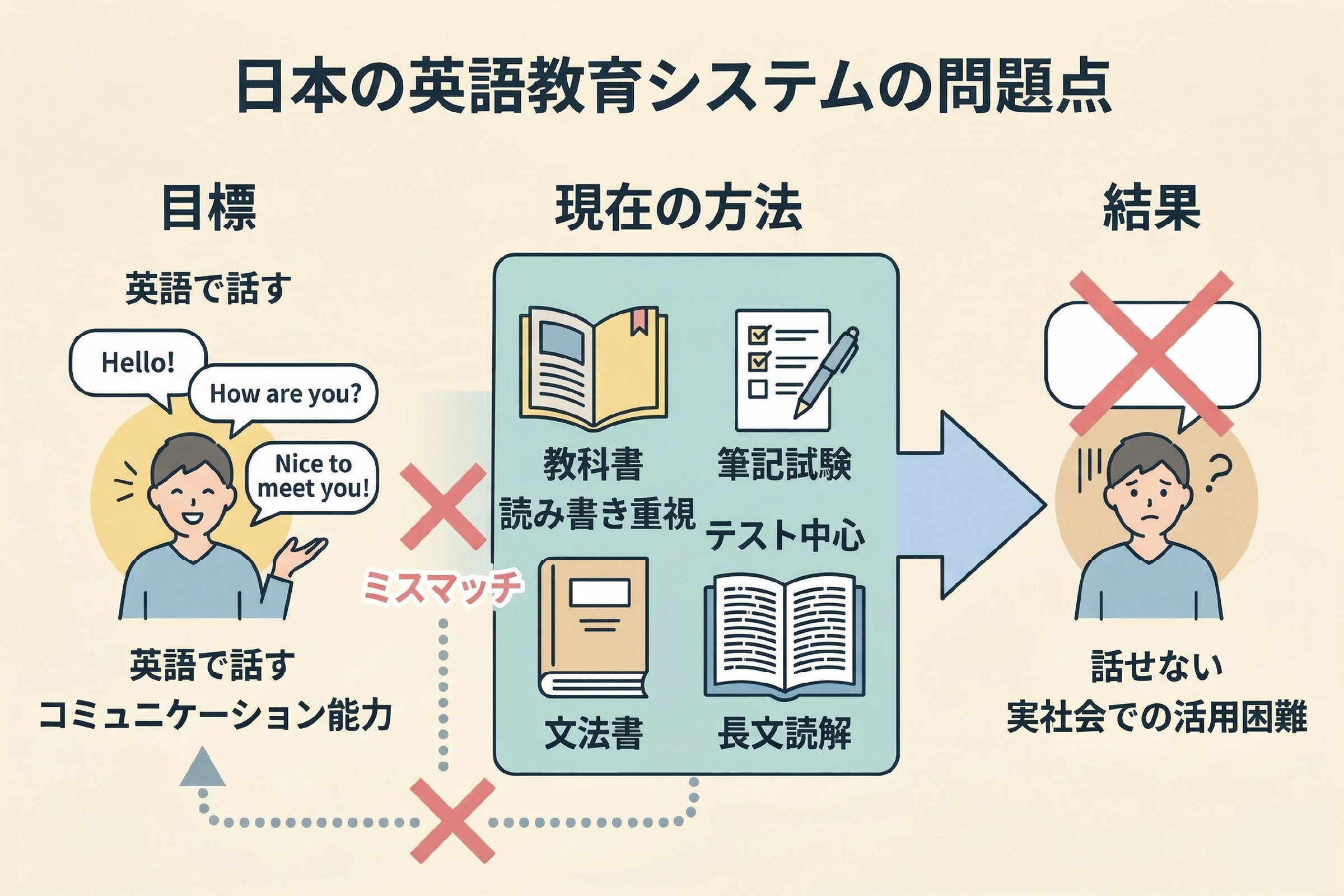 学校教育が「英語を話すこと」を目的としていないからです。