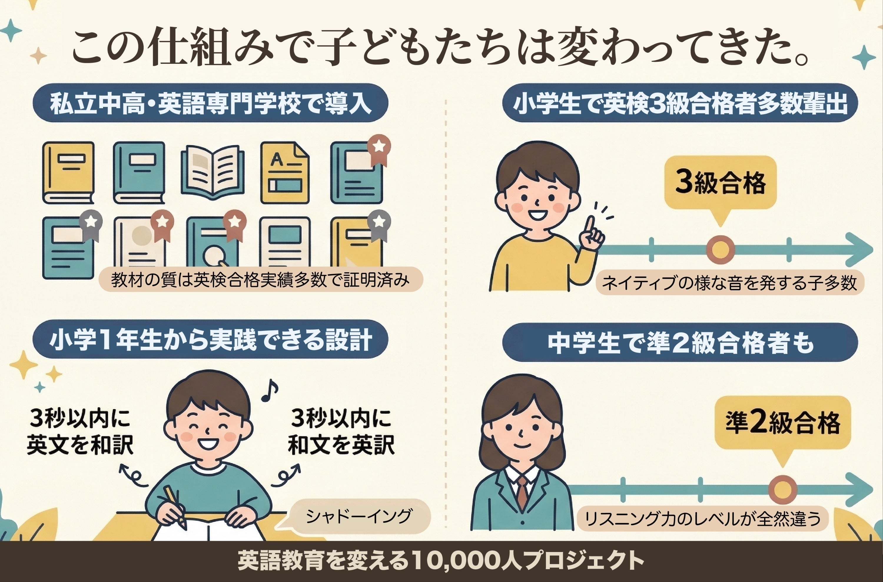 1万人の子どもたちが英語を話す環境が生まれます。