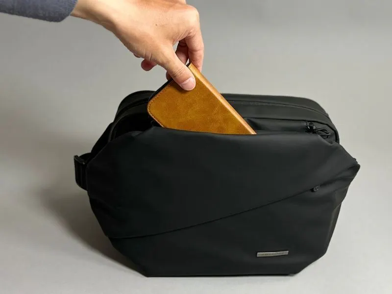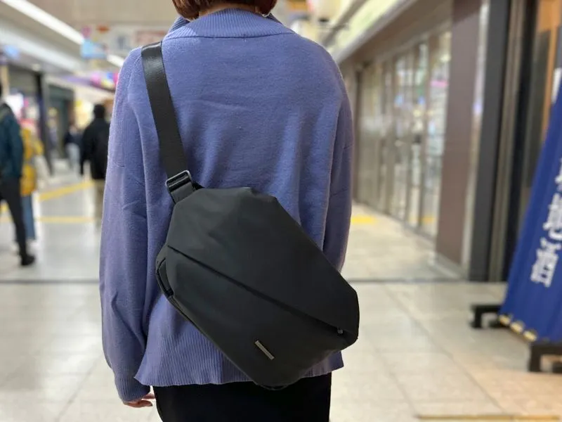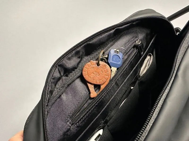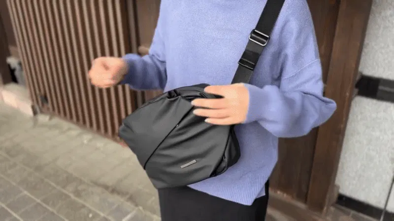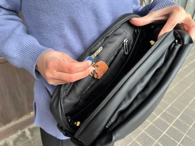バッグをクルッと前に回して、手を伸ばすだけ。