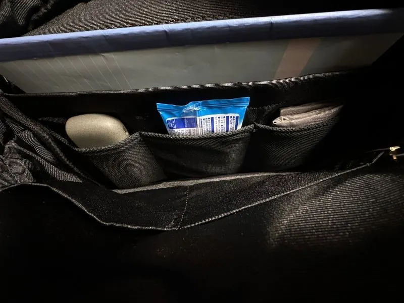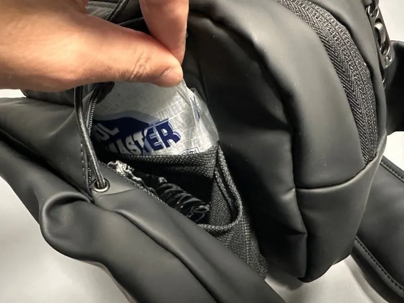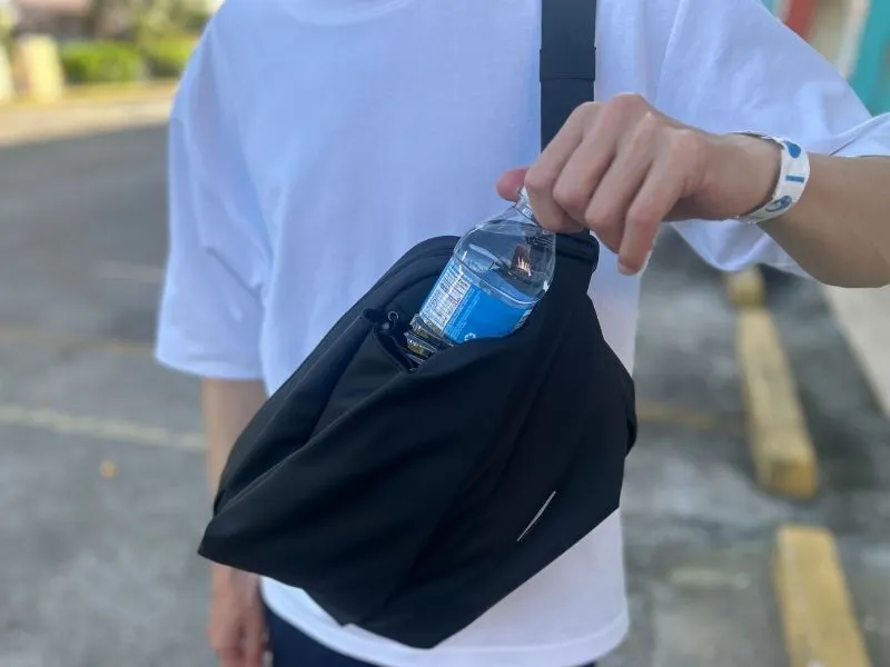 幅30cmのメインポケット、もしくはドリンクポケットに入れて持ち歩くことができます。