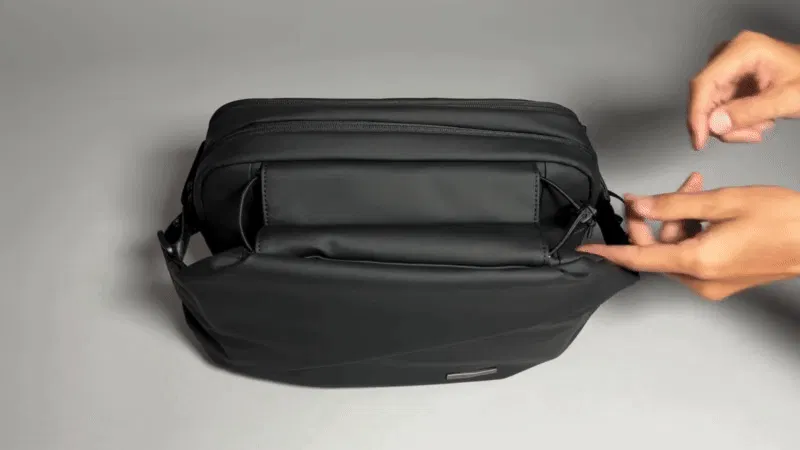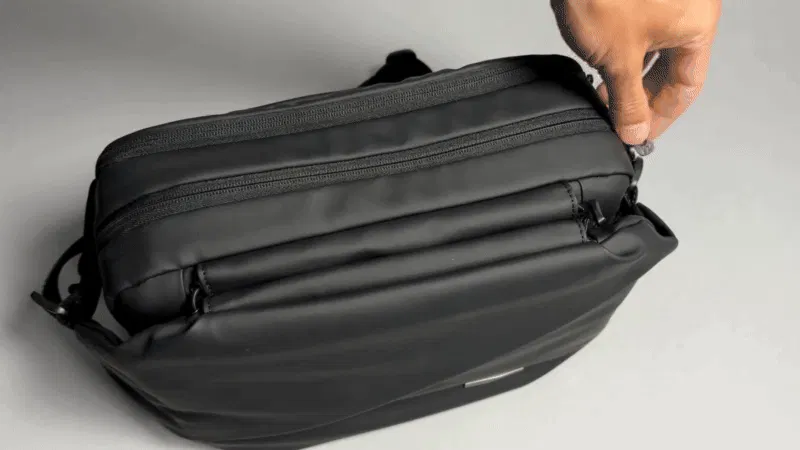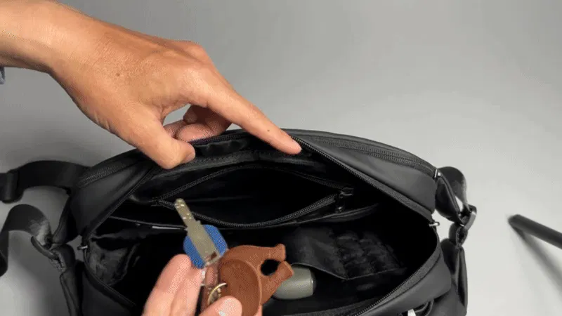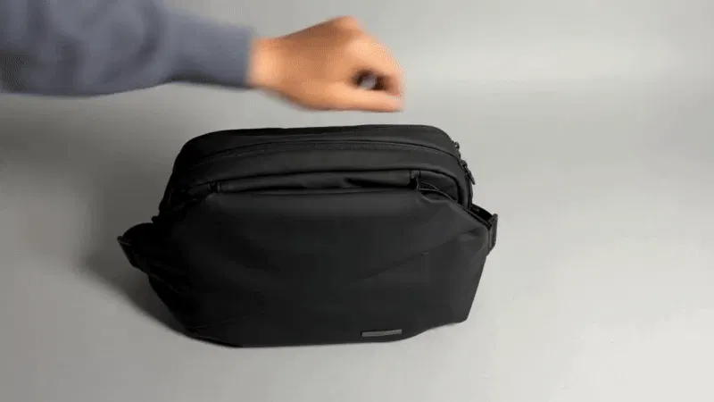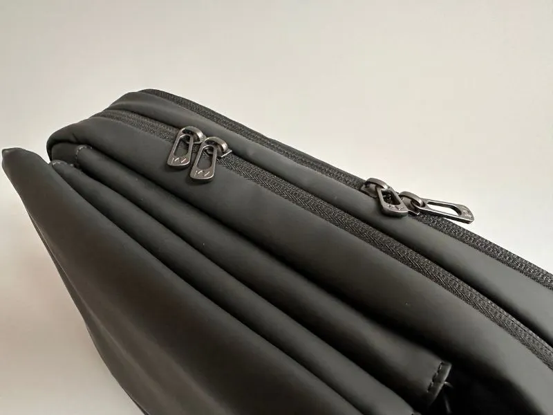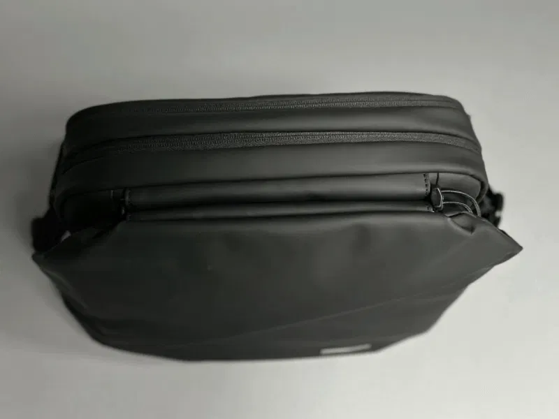 床に降ろしたり、両手でファスナーを開ける必要はありません。