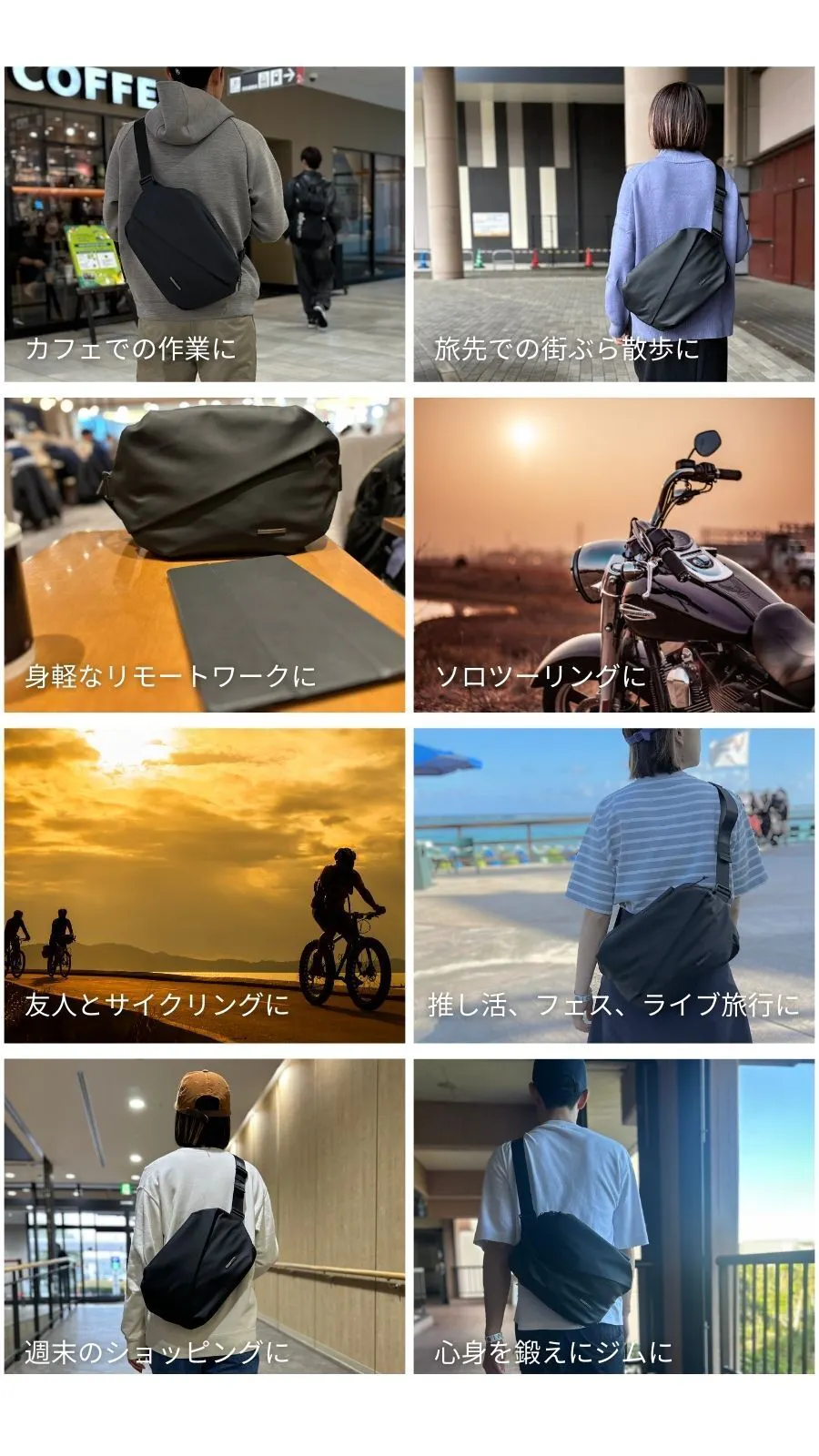 旅行が好きな方、仕事帰りにジムやヨガに通う方、荷物少なめでの通勤、自転車、バイクに乗る方、カフェでタブレットを使って作業をしたり、映画・ゲームを楽しむ方におすすめです。