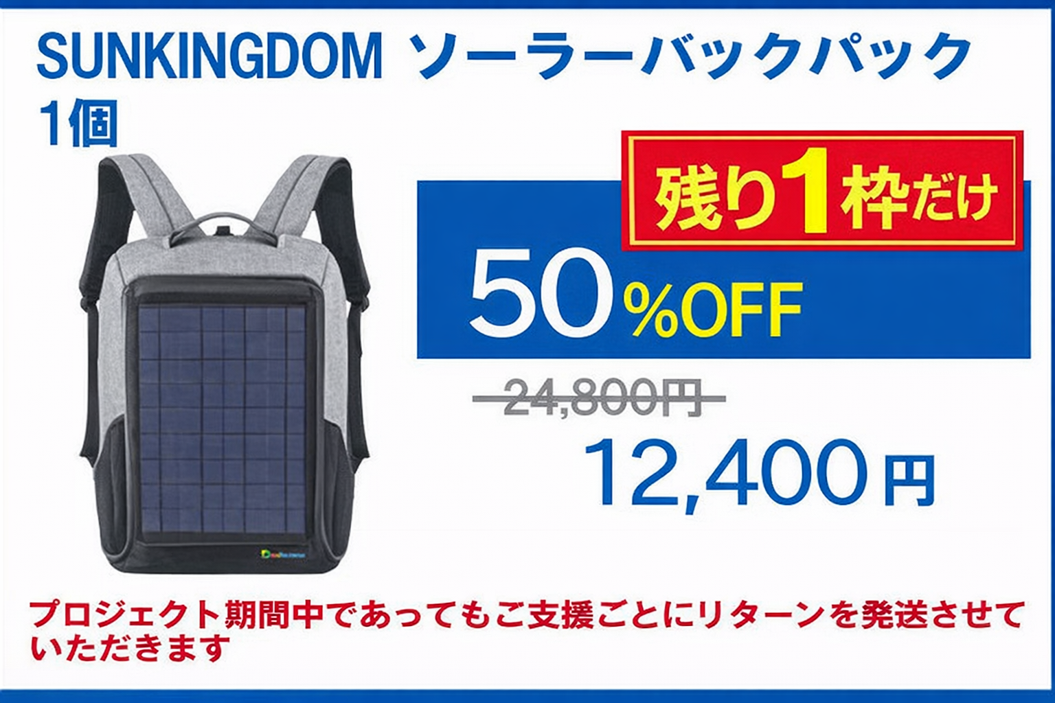 50%OFF のリターン枠が ついに残り1枠 になりました!!