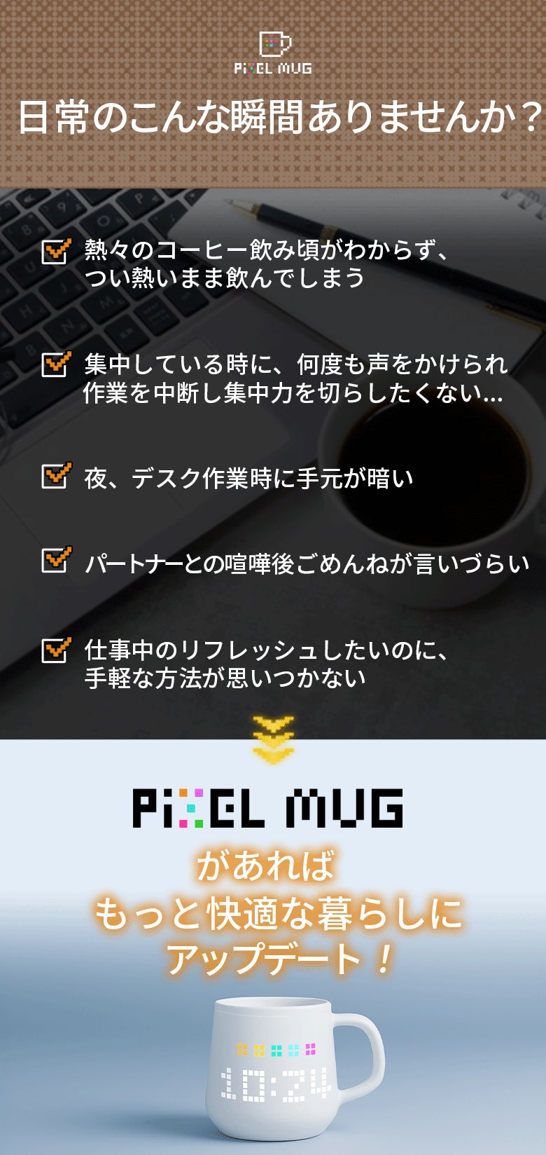 デスクがパッと華やかに! 社内であなたのPixelMugにみんな釘付け!