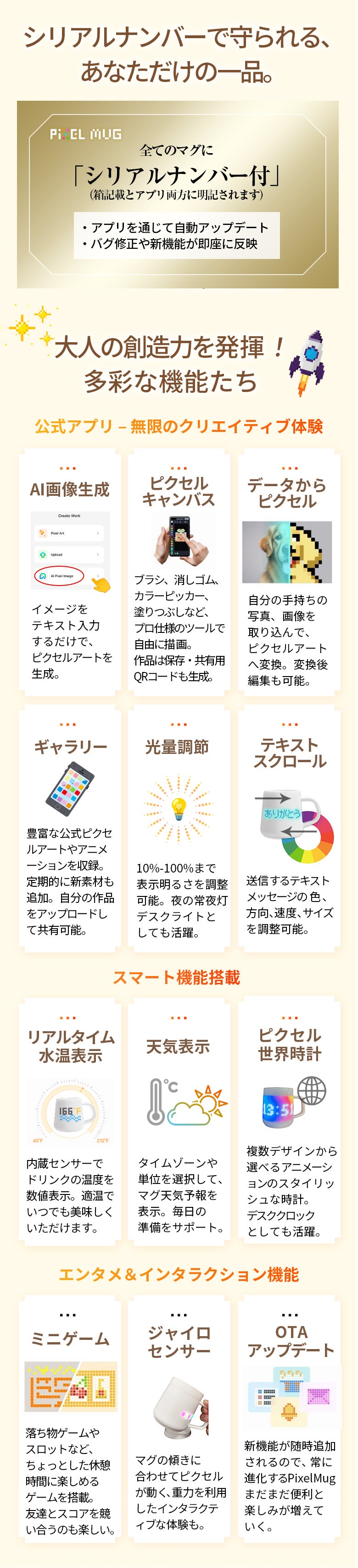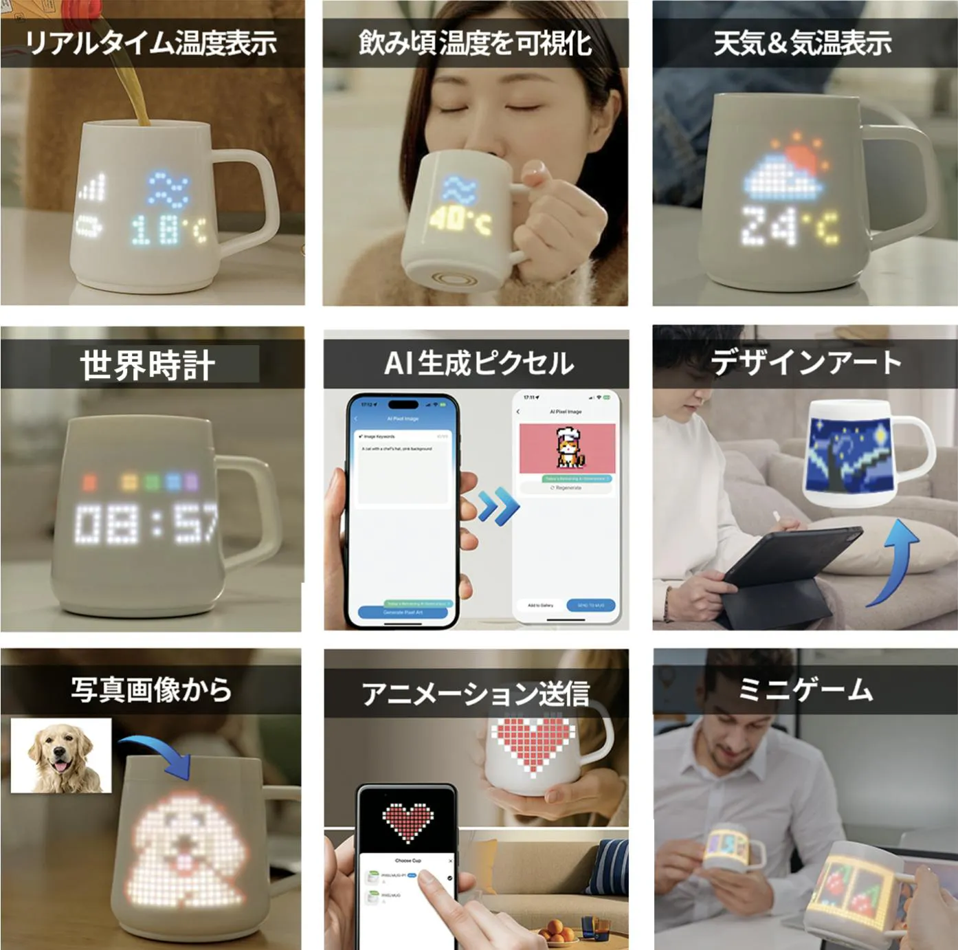 デスクの相棒として、創造性を表現するキャンバスとして、想像力を日常に持ち込む手段として。PixelMugは、あなたの毎日に新しい楽しさをもたらします。