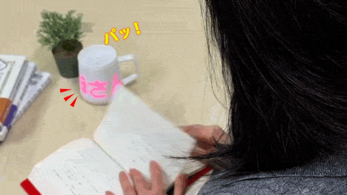 まさか、マグカップに文字が浮かび、光って動き出すなんて!