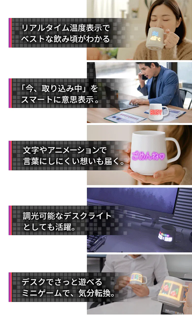 ゲームやアニメーションで遊べる、新しい新体験を届けるマグカップです。