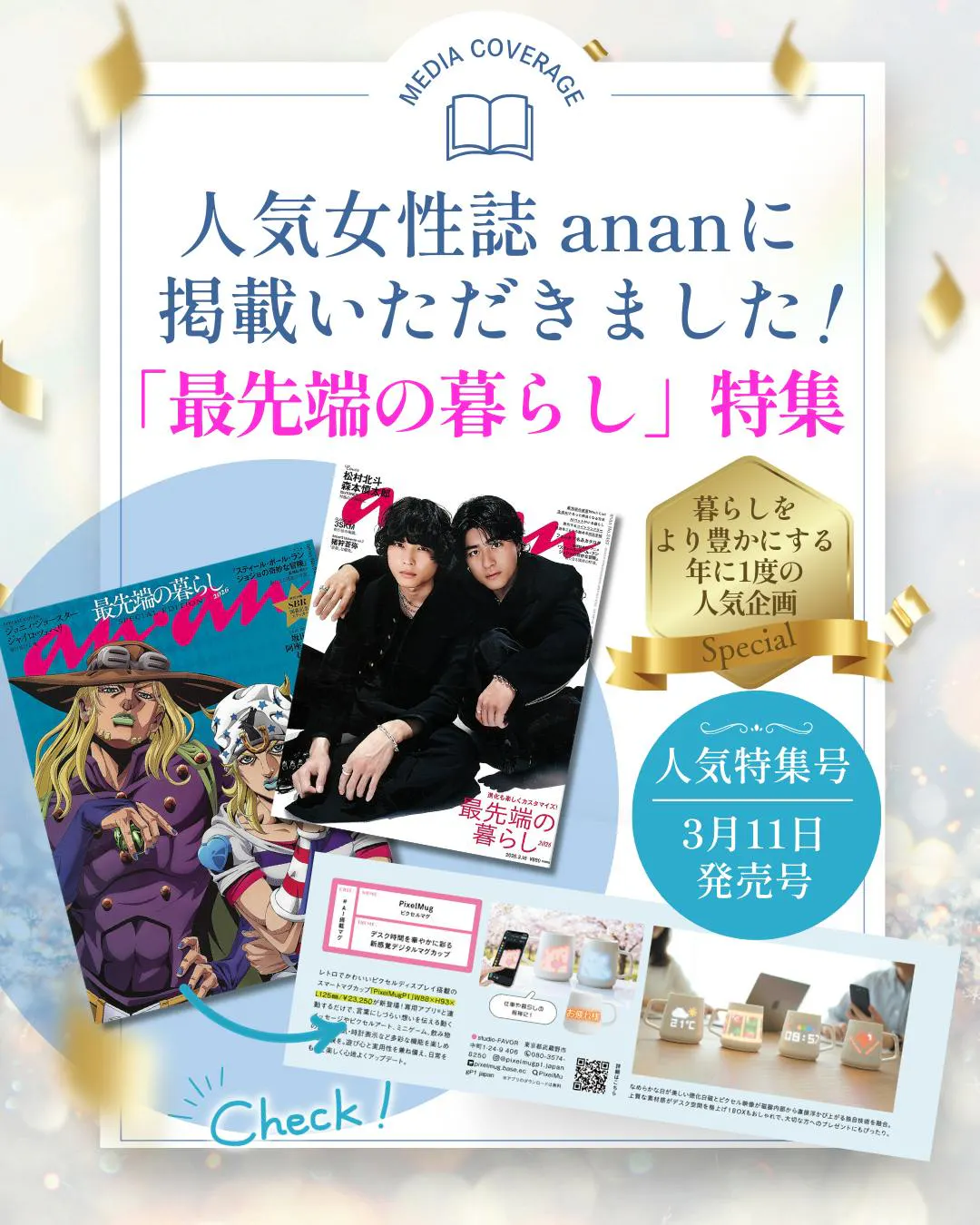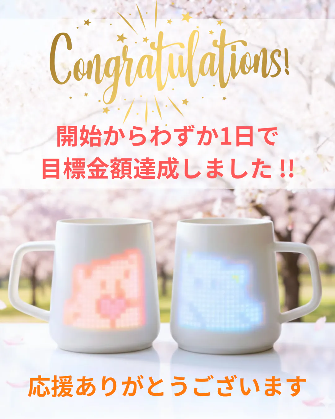 2026/03/20 18:35本日よりPixelMugのクラウドファンディングがスタートしました!早速ご支援いただいた皆さま、本当にありがとうございます…!実は今回のPixelMug、すでに朝の情報番組で紹介 ビックカメラ池袋ITtower店で展示中と、少しずつ注目を集めています。それでもまだ始まったばかりで、この最初のタイミングがとても重要です。PixelMugはただのマグではなく、「日常の中に、小さな感動と癒しをつくるもの」です少しでも気になっている方は、このタイミングでぜひチェックしていただけたら嬉しいです。 ビックカメラ池袋ITtower店で実際に触って体験していただけます皆さまと一緒にこのプロジェクトを育てていけたら嬉しいです引き続き応援よろしくお願いいたします! もっと見る