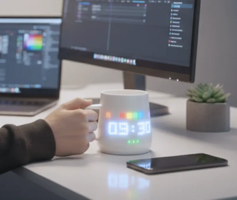 PixelMug P1は、二重層ポーセリン(磁器)とピクセルディスプレイ、そしてAI技術との革新的な融合により誕生したマグカップです。この製品の誕生までには、約1年にわたる開発の日々がありました。