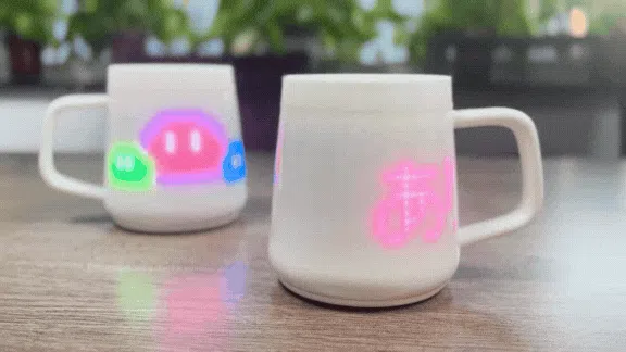 まさか、マグカップに文字が浮かび、光って動き出すなんて!