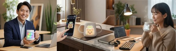 PixelMug P1は、二重層ポーセリン(磁器)とピクセルディスプレイ、そしてAI技術との革新的な融合により誕生したマグカップです。この製品の誕生までには、約1年にわたる開発の日々がありました。