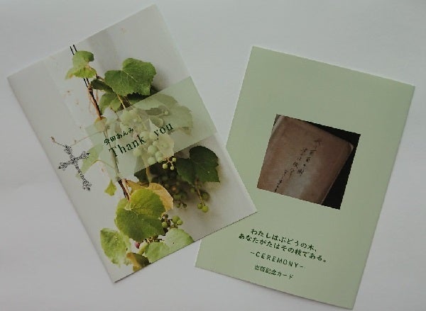リターン(返礼品)としてのオリジナルカードが出来上がりました。 裏表紙も公開です。 古い讃美歌の表紙に文語体で書かれた聖句。 「我は葡萄の樹、汝らは枝なり」 おそらく、亡くなった私の父が書いたものです。 オリジナルカードは、完成本におつけ致します。