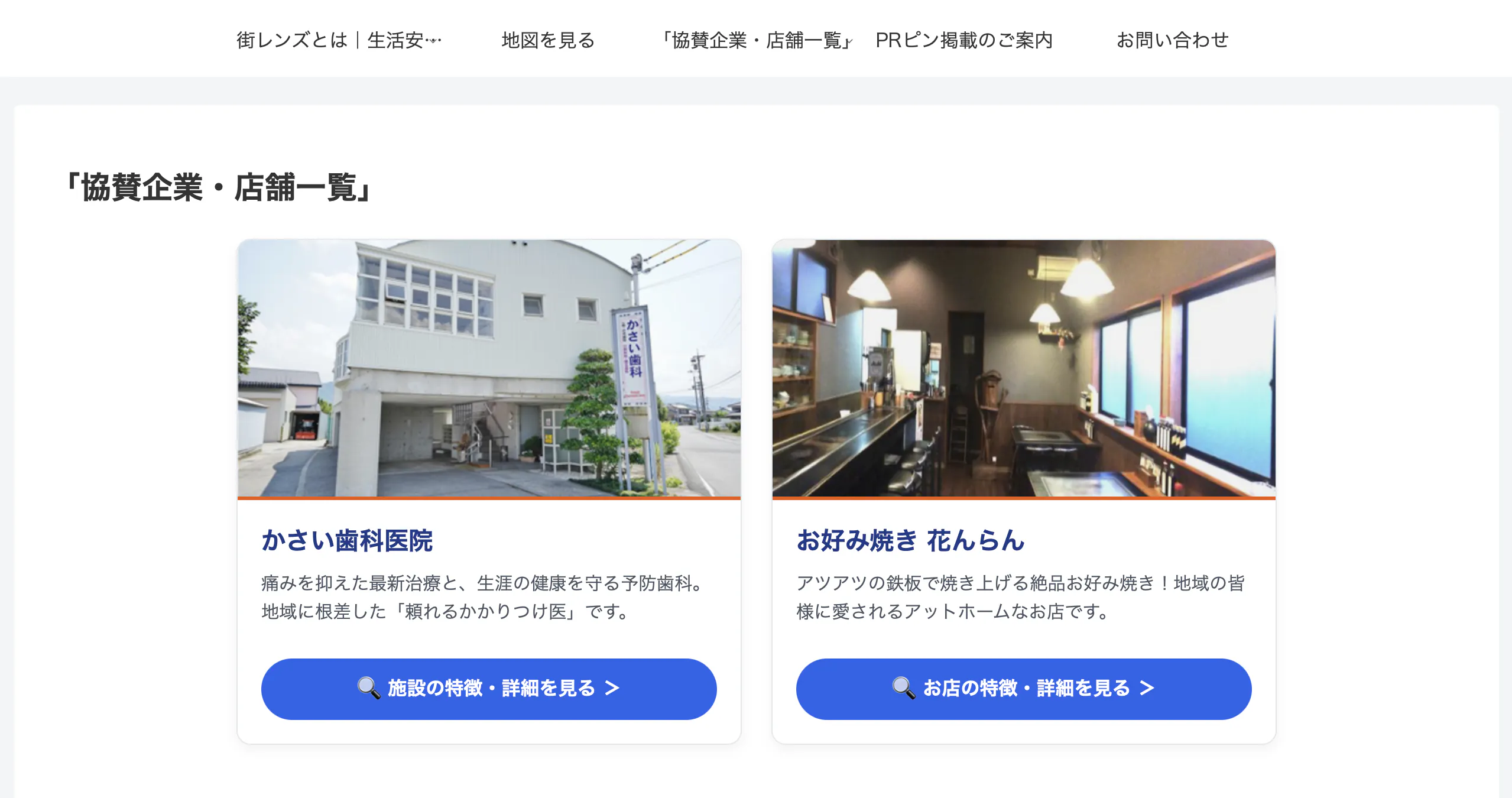 → 協賛企業・店舗を可視化し、特別ページで丁寧に紹介。社会貢献(信用)と集客(実利)を両立するスポンサー枠です。