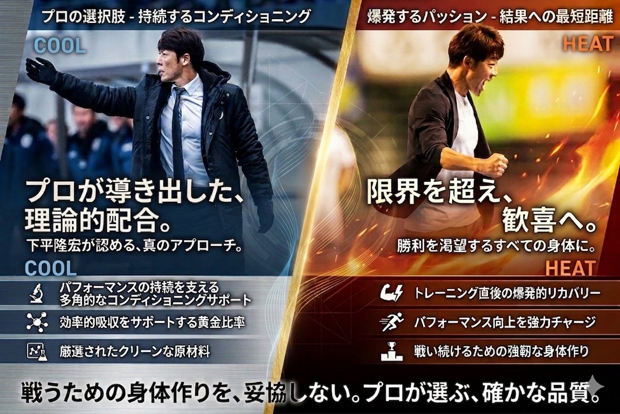 私たちは今回、元サッカー日本代表・元Jリーガー・元Jリーグ監督の下平隆宏氏と共同で新しいプロテインブランドを立ち上げます。