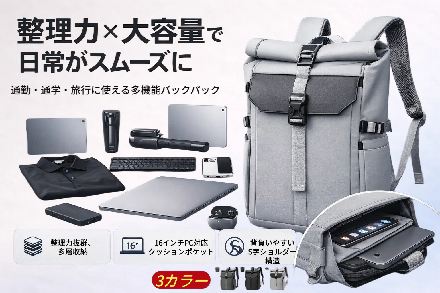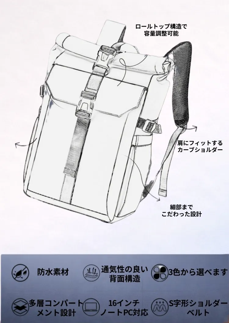 【残り1日】最後のお願いです★撥水×大容量×PC収納。通勤・通学・旅行まで“毎日使える”ロールトップリュック
