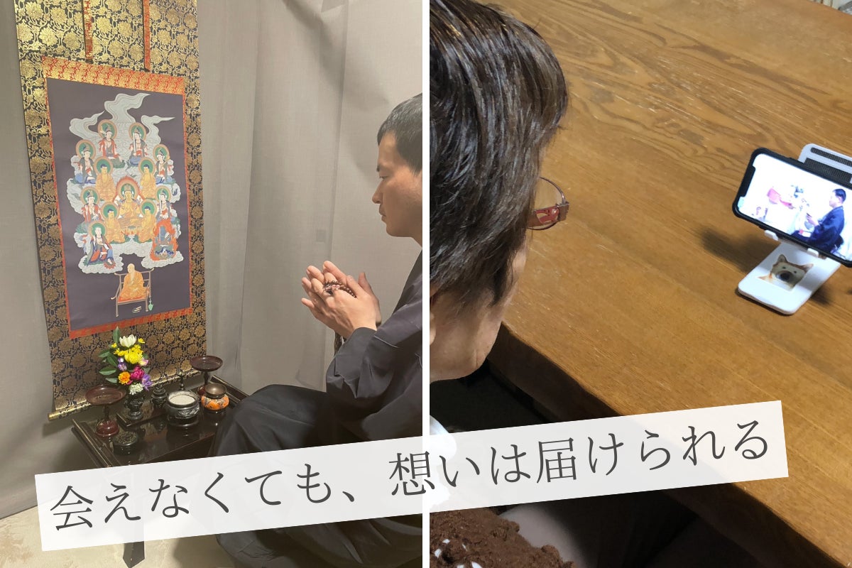 お骨の前や、思い出が詰まったいつものリビングなど、安心できる場所から参加していただけます。