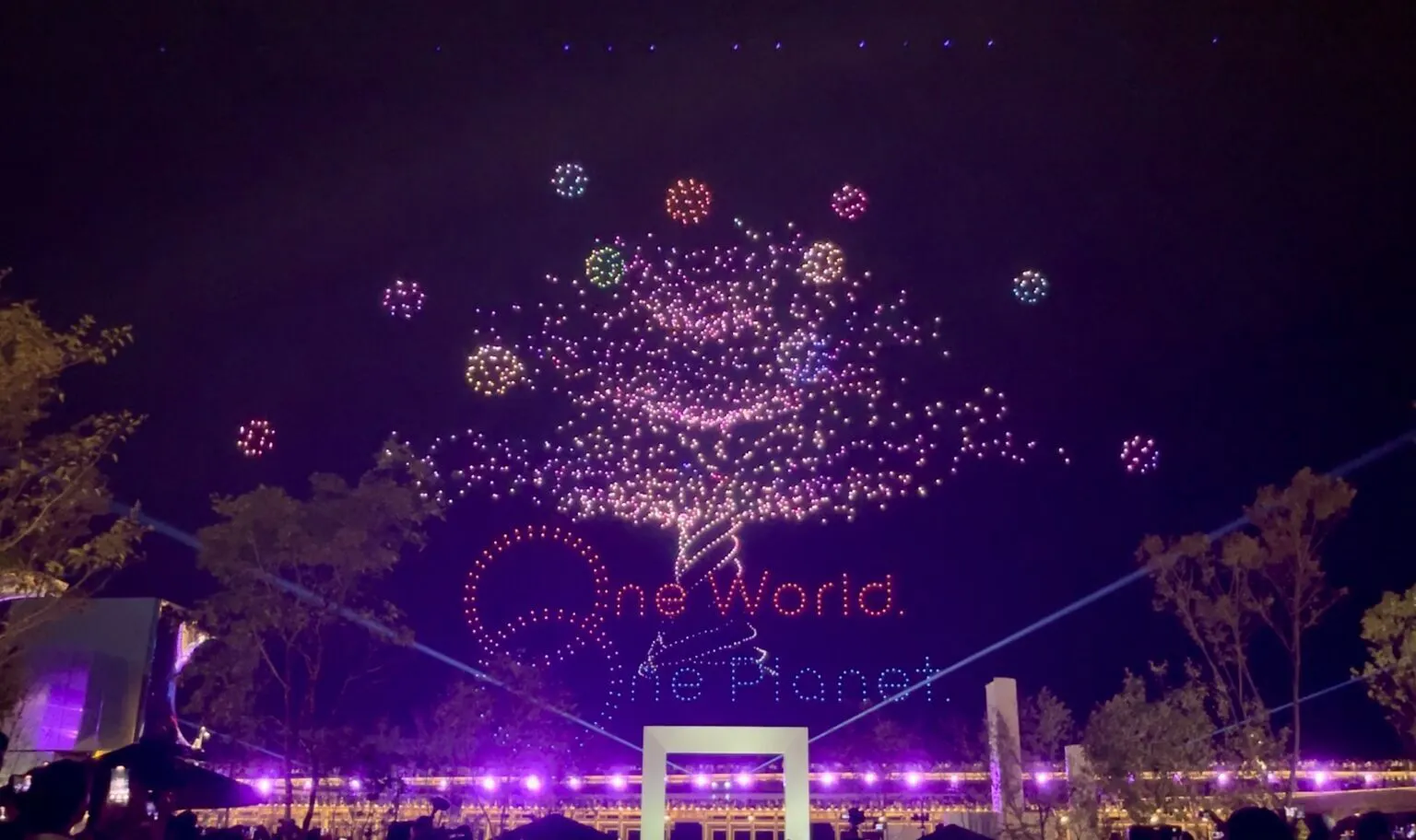 あの「One World, One Planet.」のドローンショーを、一夜限りの進化版として蘇らせます。