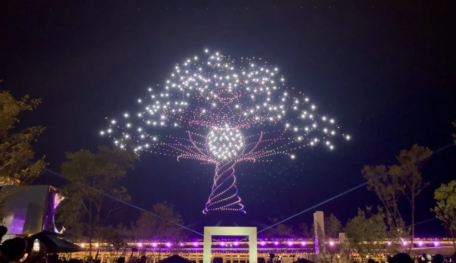 [大阪・関西万博でのドローンショーの様子 "Flash Wish Tree"]