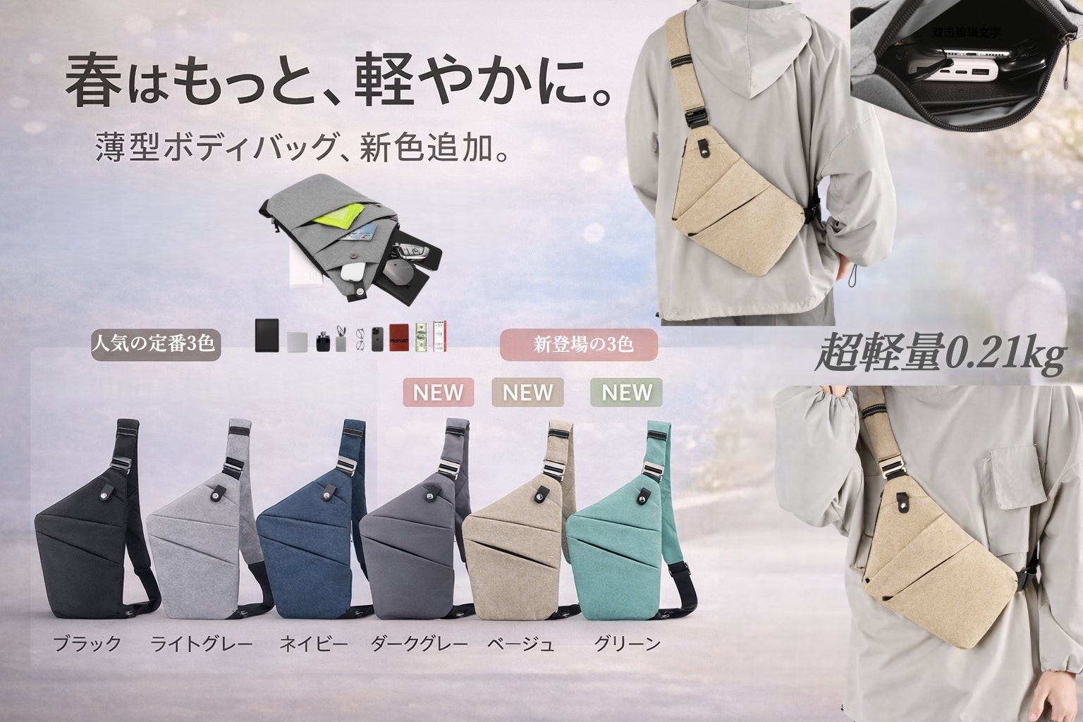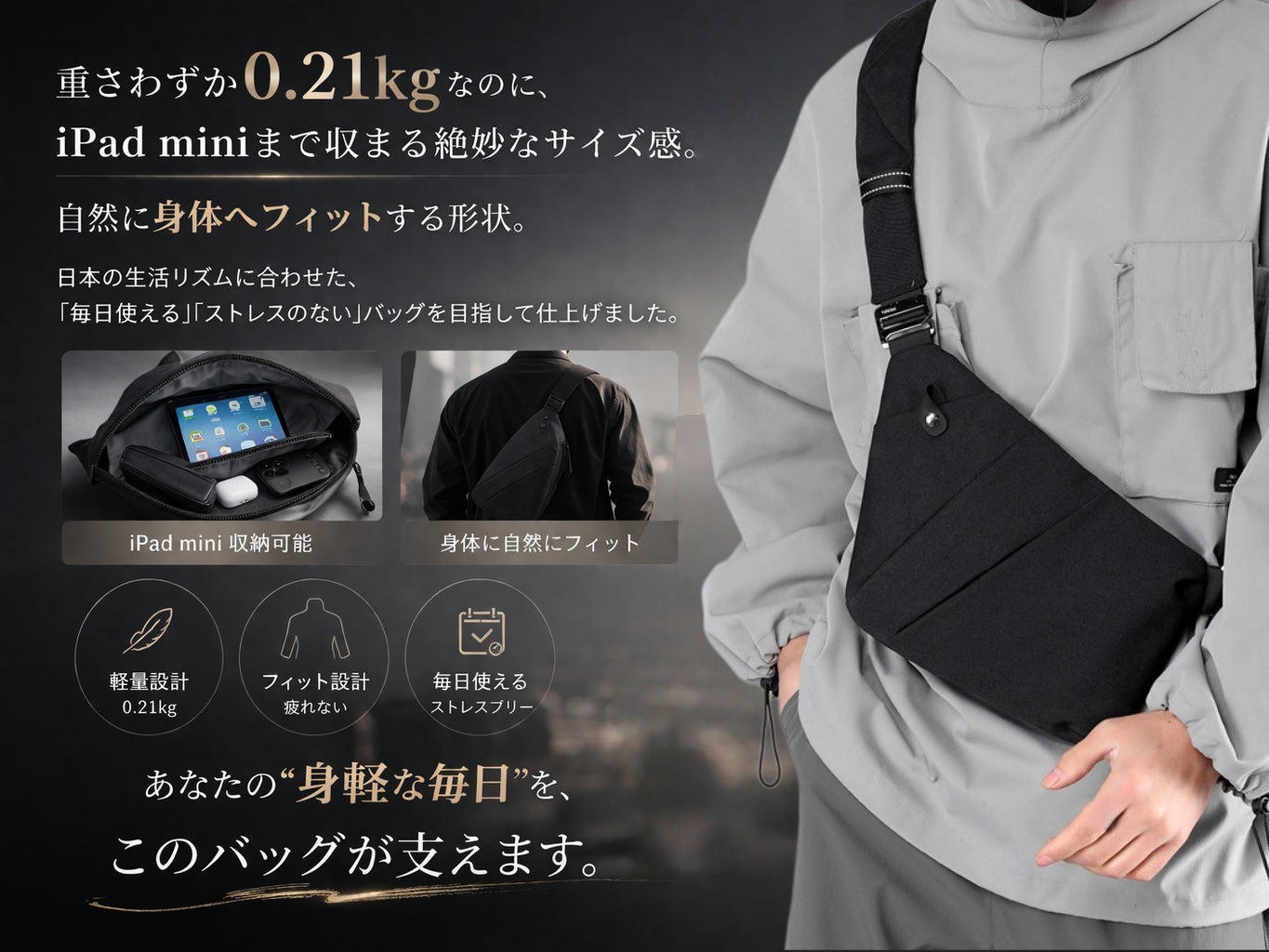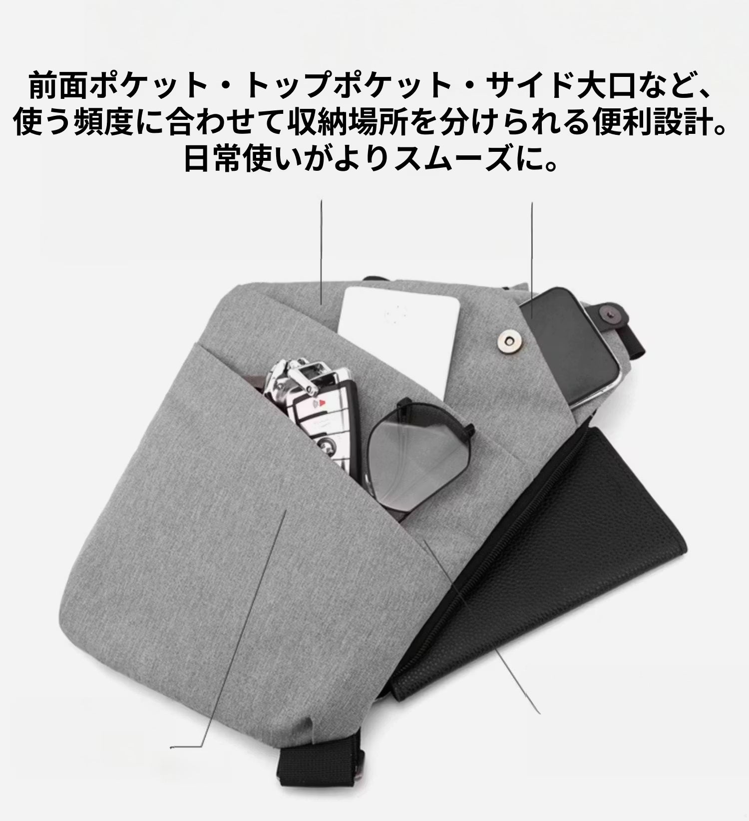 【本日終了】知らずに終わるのは、もったいない!!超軽量0.21kg・多層収納×防滴仕様|驚くほど薄い機能美を極めたスリングバッグ