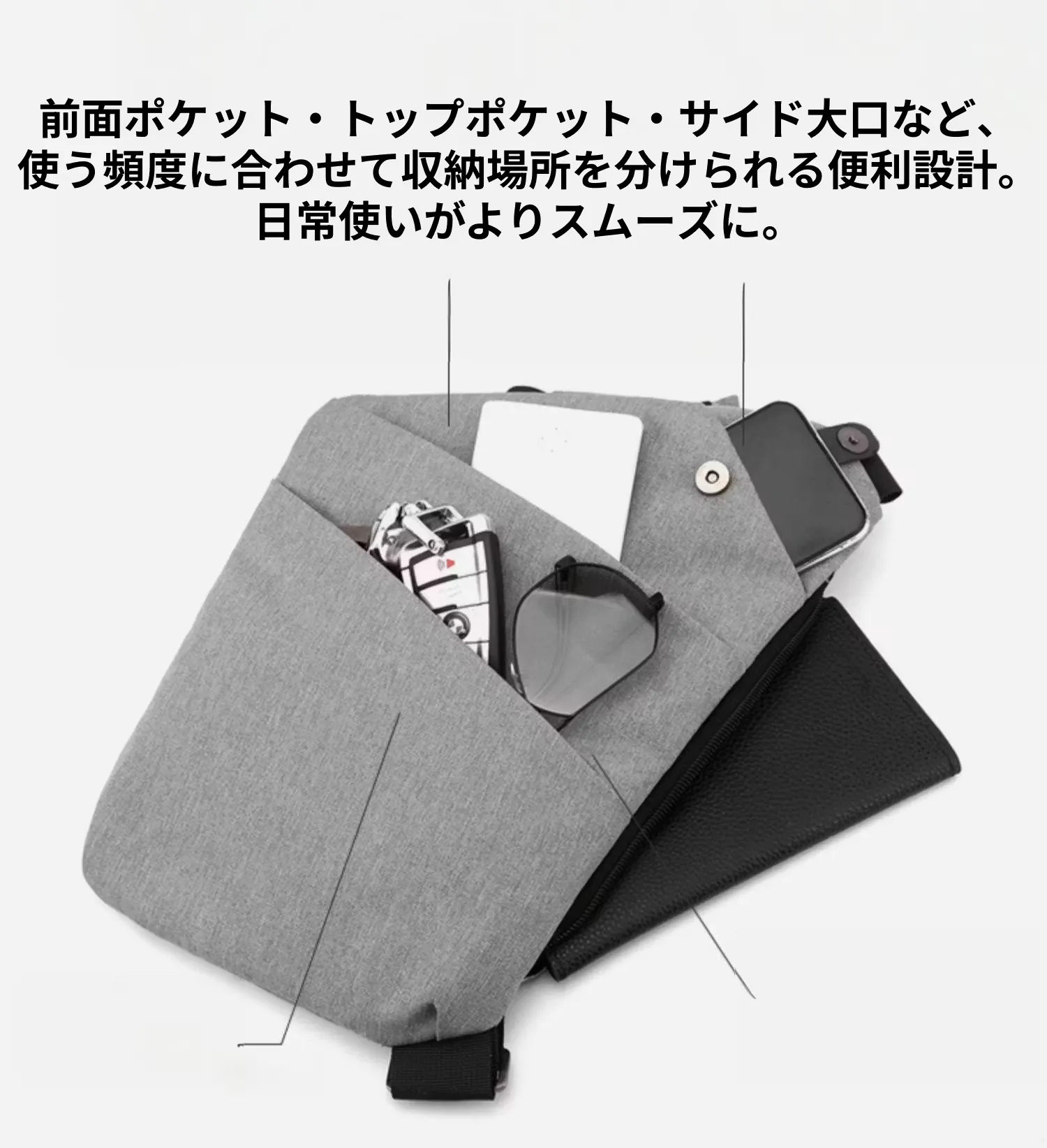 「必要な物だけ、軽く、スマートに持ち歩きたい」そんな声から生まれたのが、このバッグです。