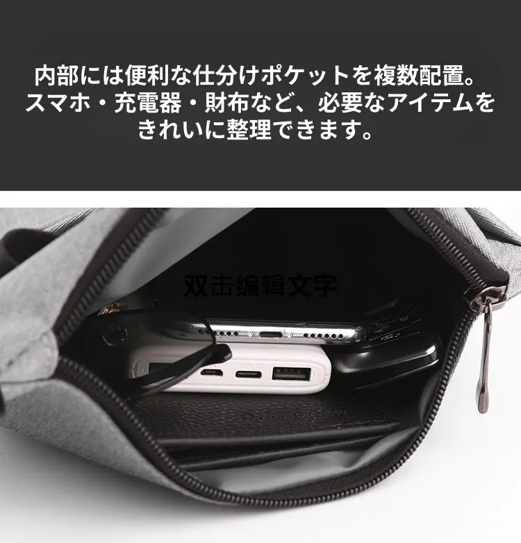 ③独立ボトルポケットで通勤が快適。撥水×大容量の多機能スリングバッグ