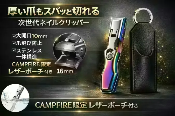 ①厚い爪もスパッと切れる。 大開口10mmネイルクリッパー|爪飛び防止&ポーチ付