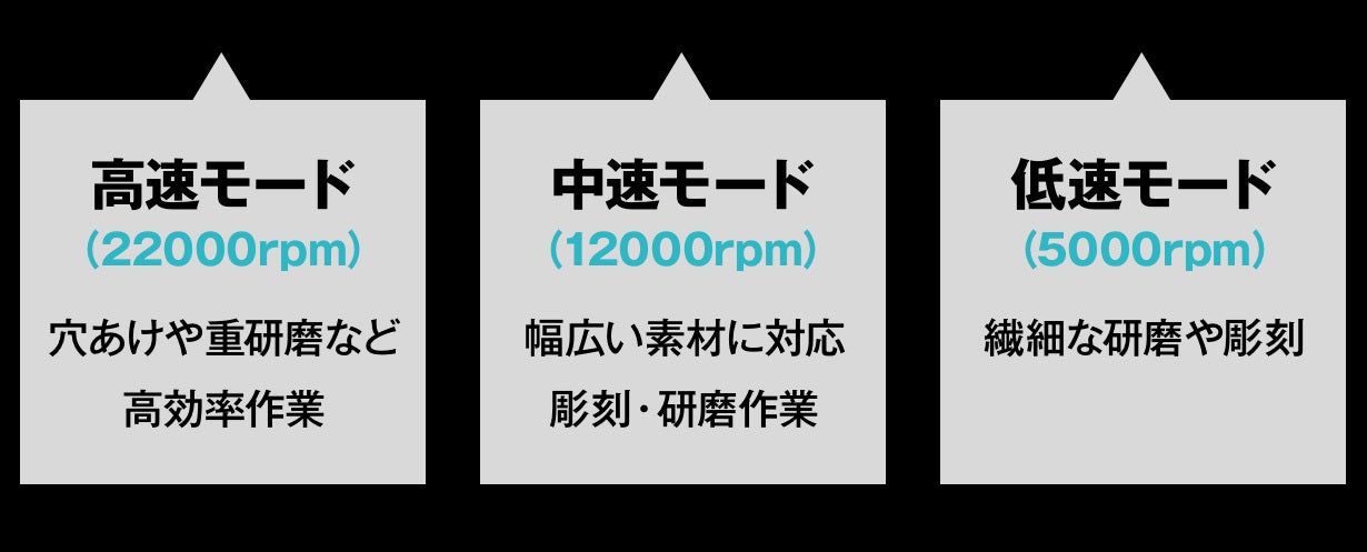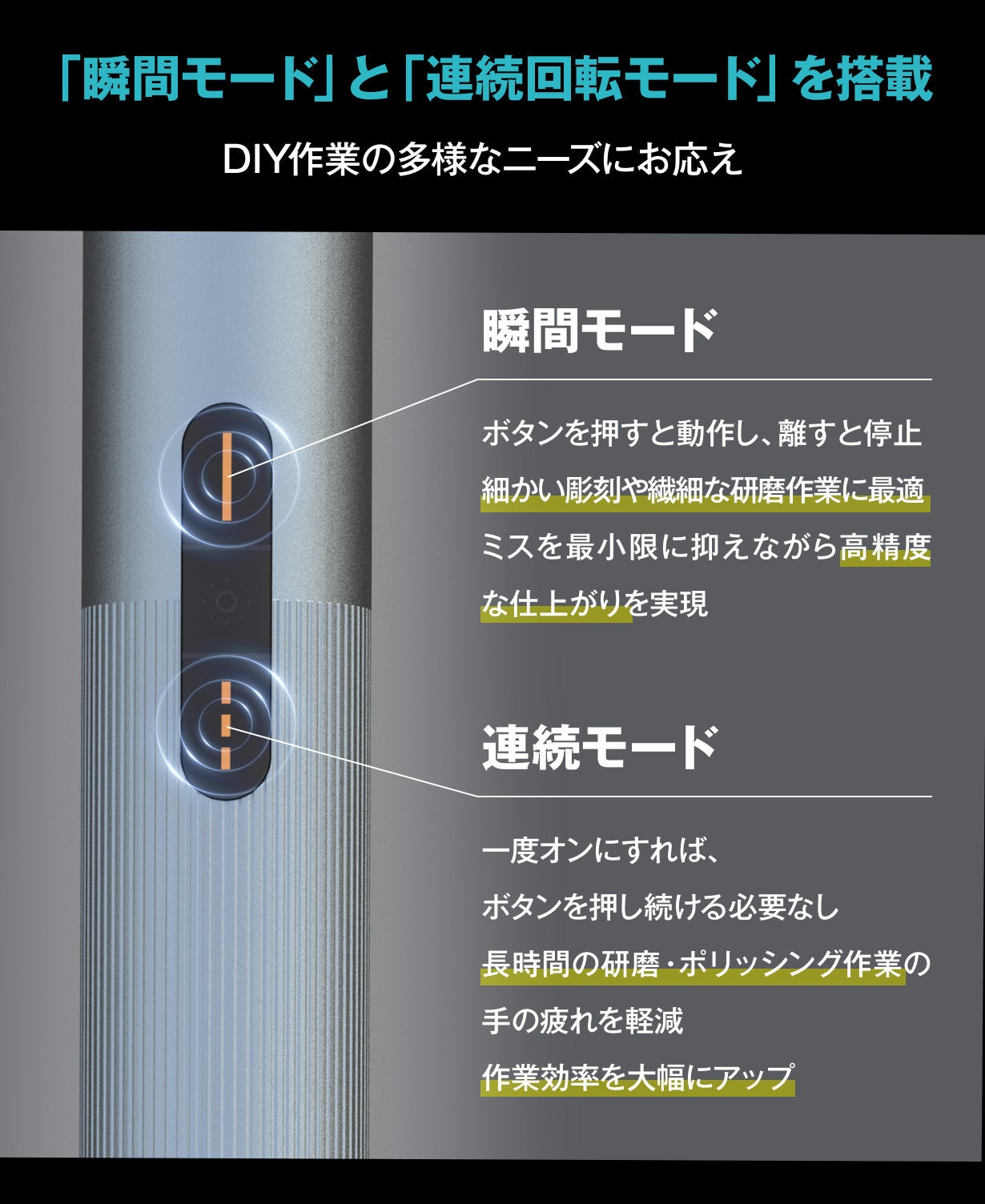 精密な作業では繊細な瞬間モードで操作を、長時間の加工では快適な連続動作を自由に選択することができます。使う人に合わせた最適な操作体験に設計しました。