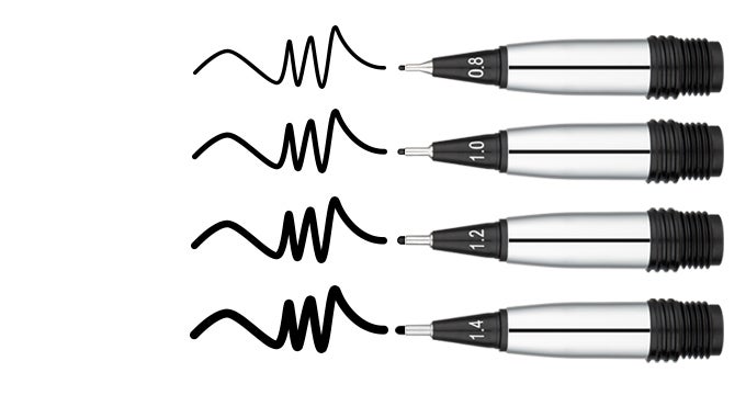 サイズには極細(0.8)、細字(1.0)、中字(1.2)、太字(1.4)の4つのサイズがあります。