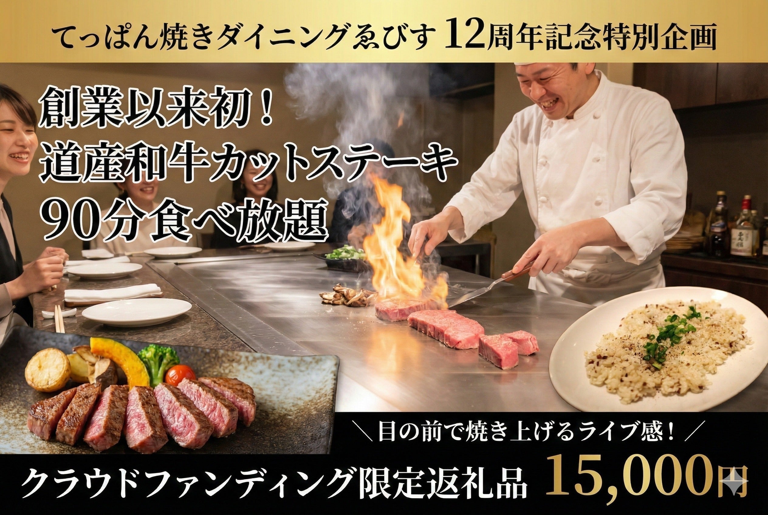 • ・創業12周年を記念したスペシャル企画!創業以来初のステーキ食べ放題を開催いたします。