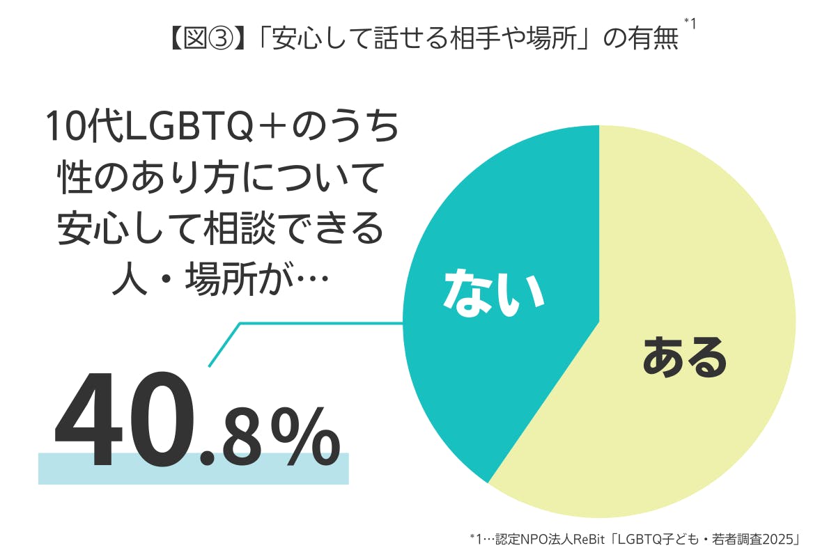 しかし、この調査によると性のあり方について安心して相談できる人・場所がないと感じている人は半数近くいます。