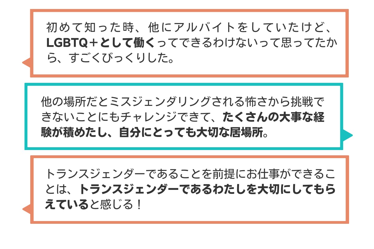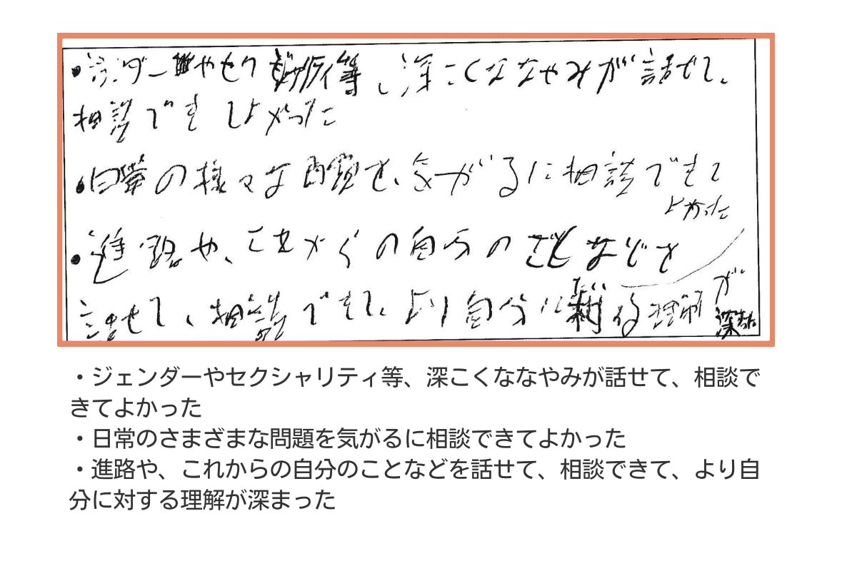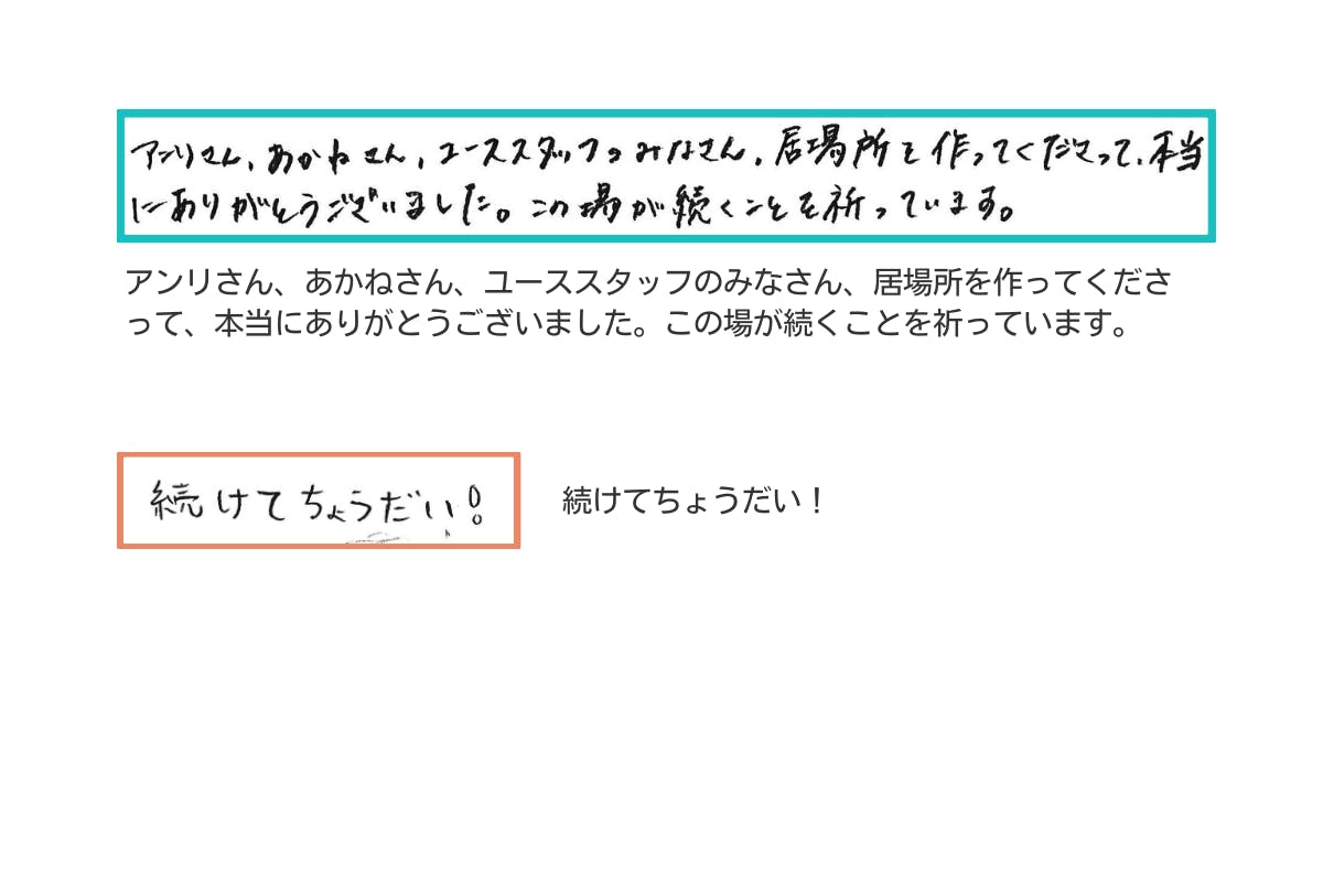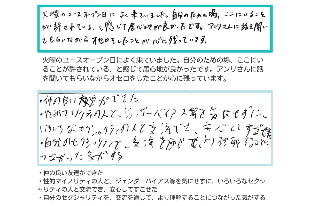 親の会に参加されている方からはLGBTQ+ユースの居場所の意義について、次のようなメッセージをいただきました。