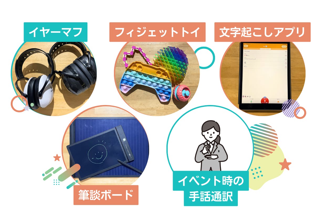多様なLGBTQ+の子ども・ユースが安心して共存できる居場所を作れるよう、例えば遮音性のあるイヤーマフや筆談ボードなどを用意してきました。