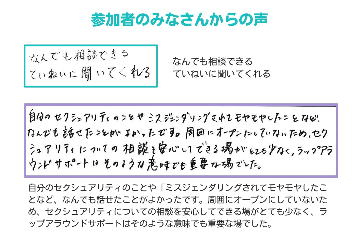 この『ラップアラウンド・サポート』について、次のような声を参加者のみなさんからいただきました。