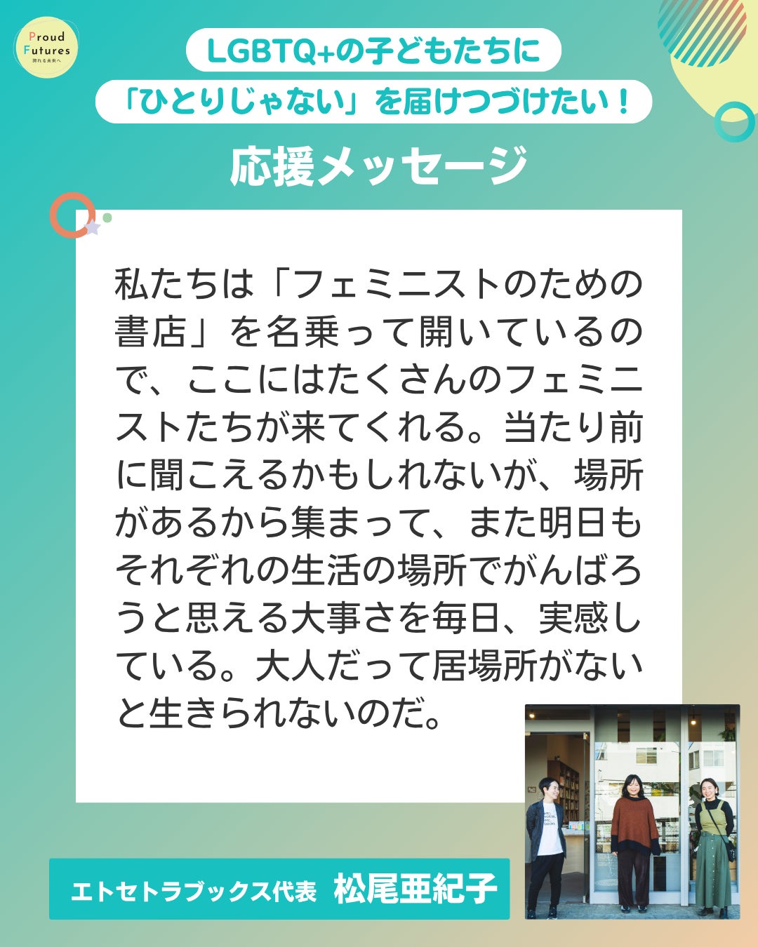 エトセトラブックス代表 松尾亜紀子さんから応援メッセージをいただきました!