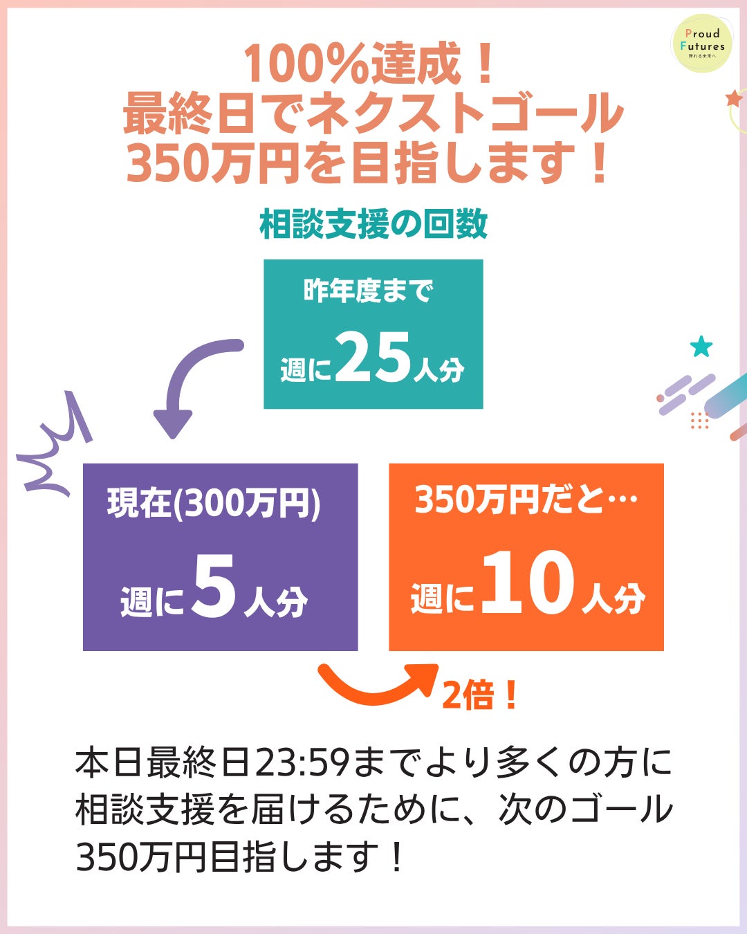 ただ、350万円を達成出来れば、【相談の回数を週に10人分】に増やせます!
