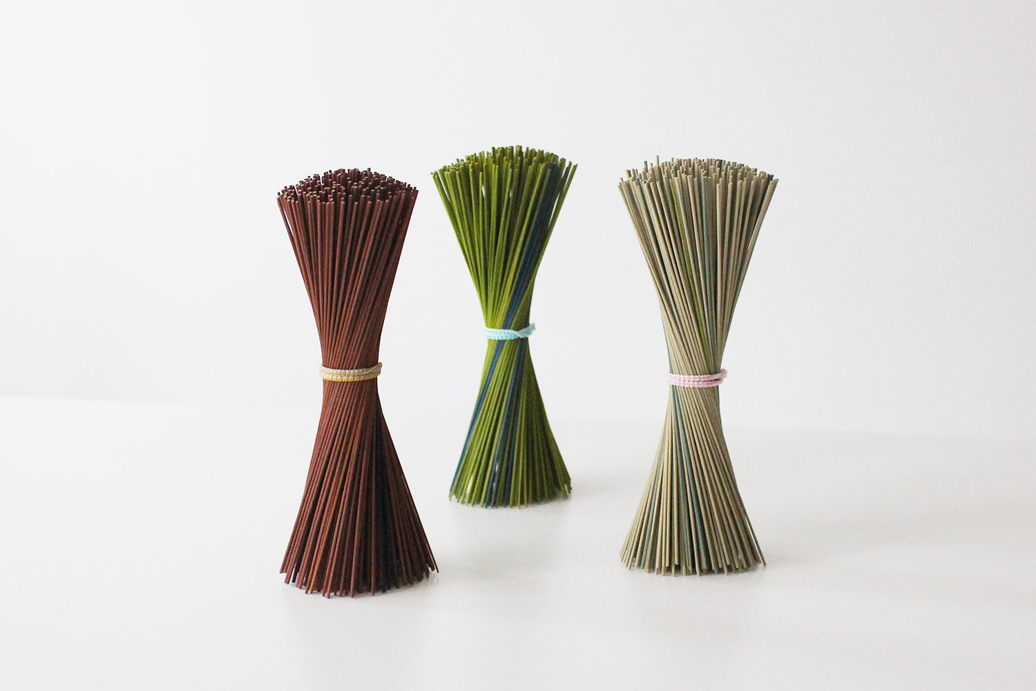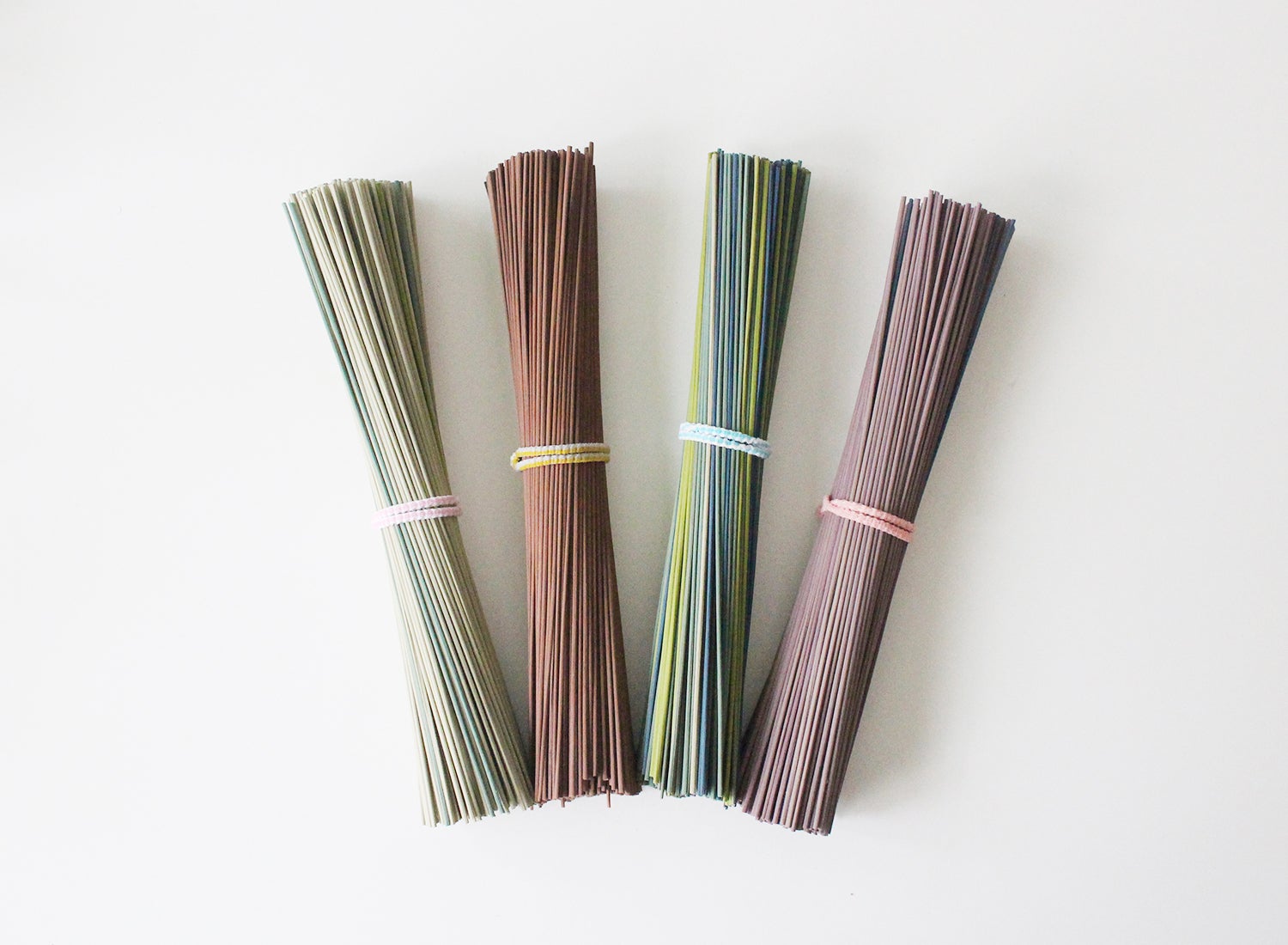 織り機から出る端材を再利用して作ったスティックは、そのまま飾るだけでも消臭、調湿効果がありますが、お好きなアロマオイルなどを垂らしディフューザーとしてもお使いいただけます。アップサイクル品のため、色はお選びいただけません。若干の混色がある場合があります。