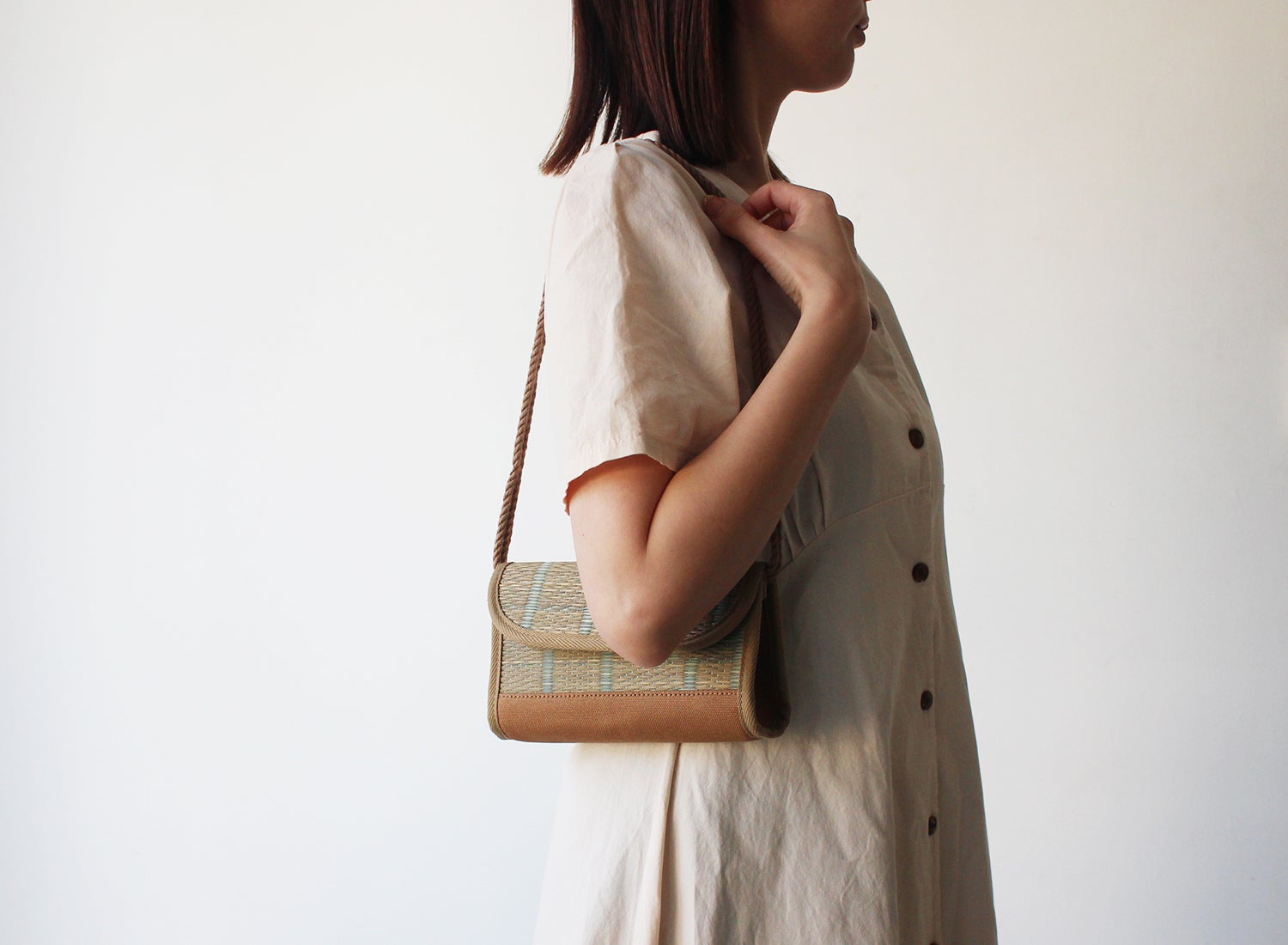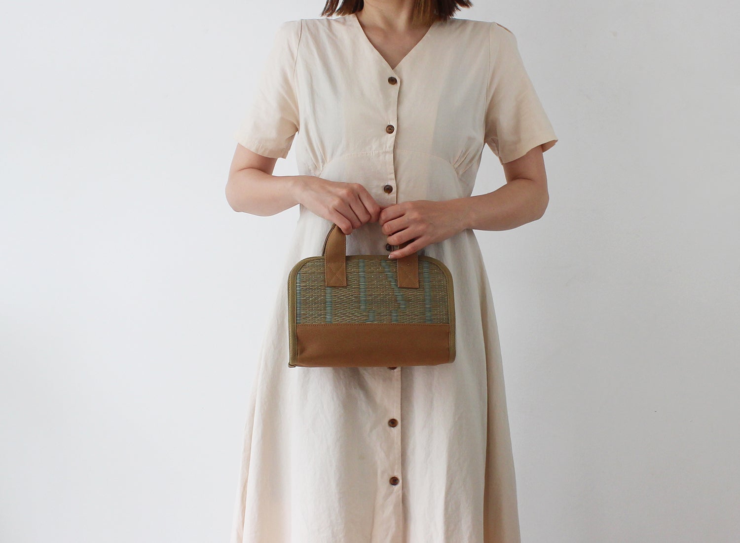 ちょっとしたお出かけに丁度いいバッグ。丈夫な帆布素材と組み合わせる事で、軽くてもしっかり耐久性があります。季節を気にせずに使えるい草の優しい肌触りが特徴のワンマイルバッグです。